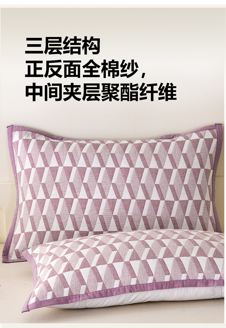 商品名称:棠薇家纺 2025新款提花绑带款枕巾棉纱布枕巾夹棉枕头巾 菱格紫