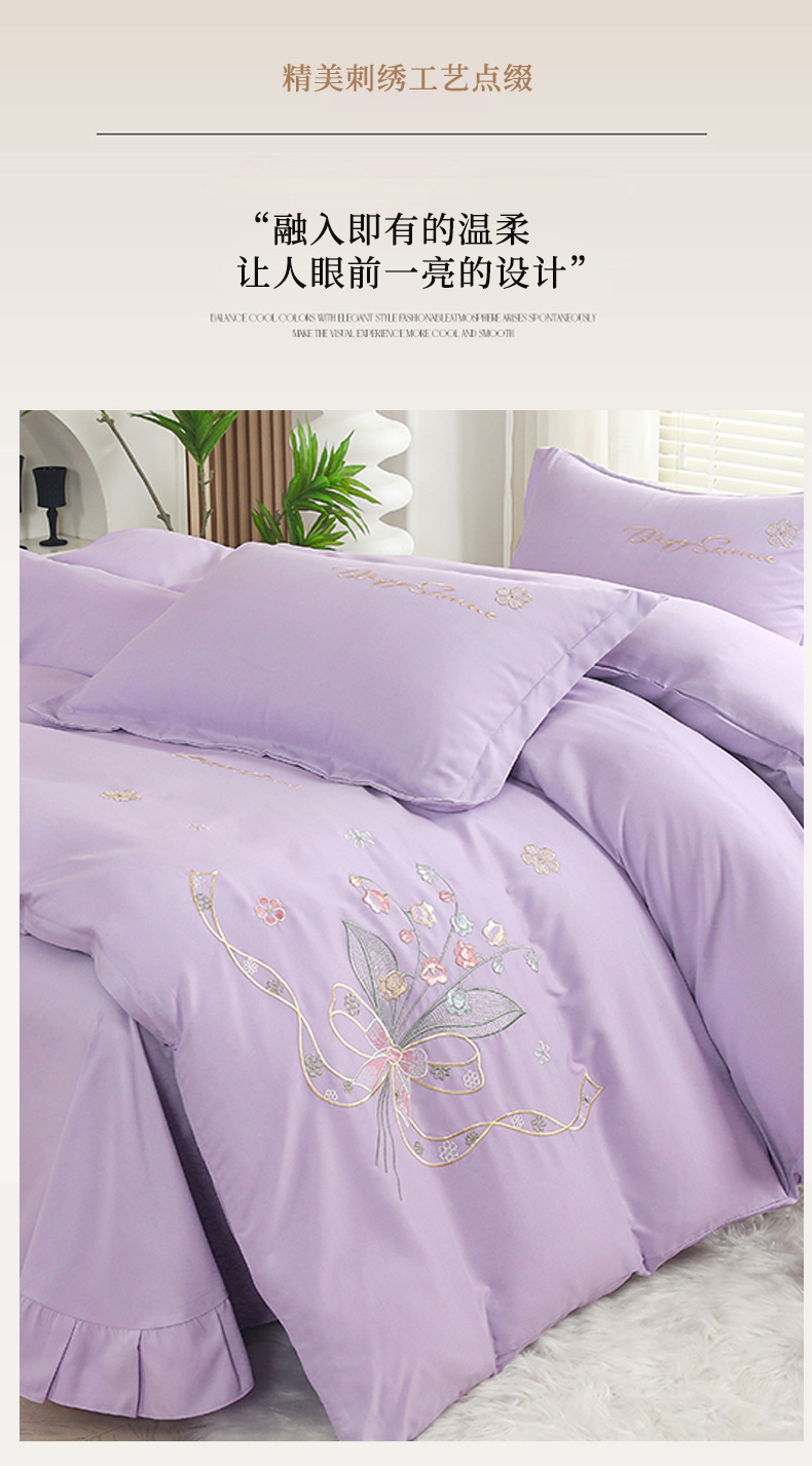 (总)天之悦家纺 2025新款水洗棉刺绣四件套-花颜,花颜-粉,花颜-紫,花颜-蓝