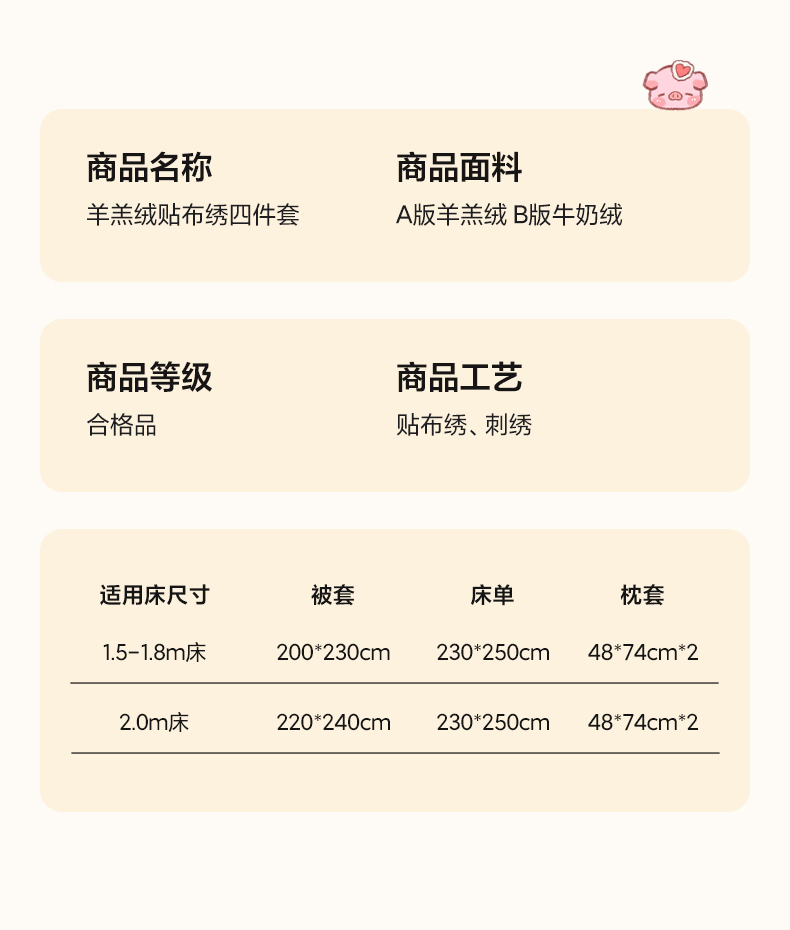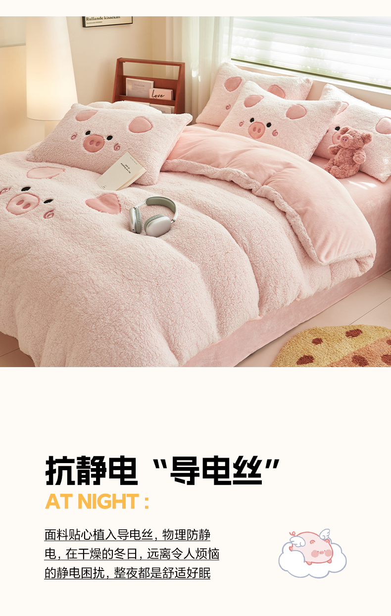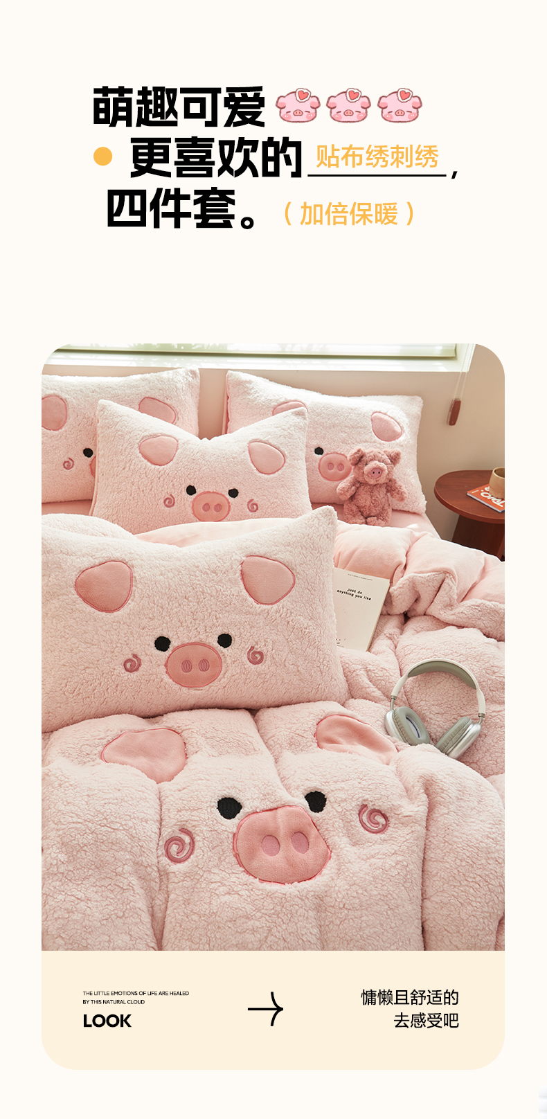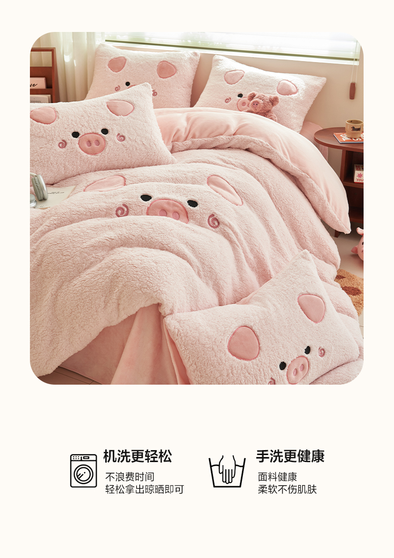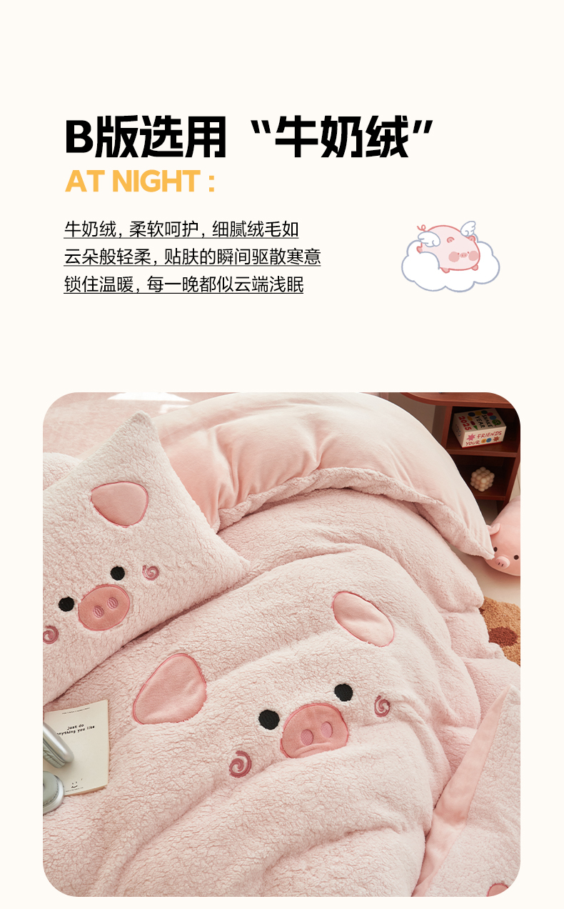 当前位置: 91家纺网 > 商品网购 > 床品套件 > 四件套 > 牛奶绒四件套 > 晨曦家纺 2025贴布绣刺绣工艺羊羔绒牛奶绒四件套 粉佩奇