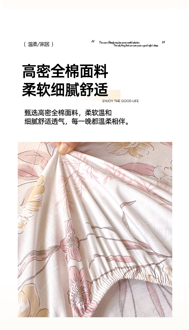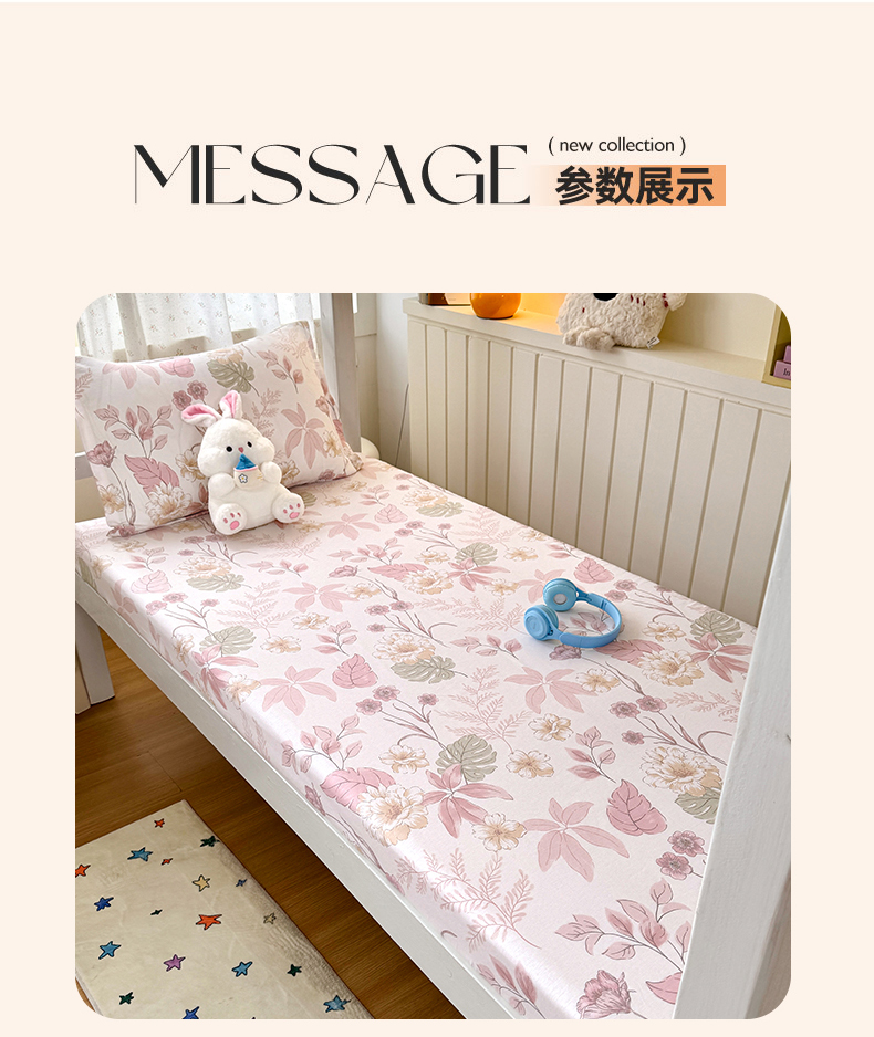 • 91家纺网 家纺一手货源 找家纺 尚帛 2026新款全棉品质喷气印花爆款四件套 多规格套件 单品系列-学生款单床笠 叶柔粉
