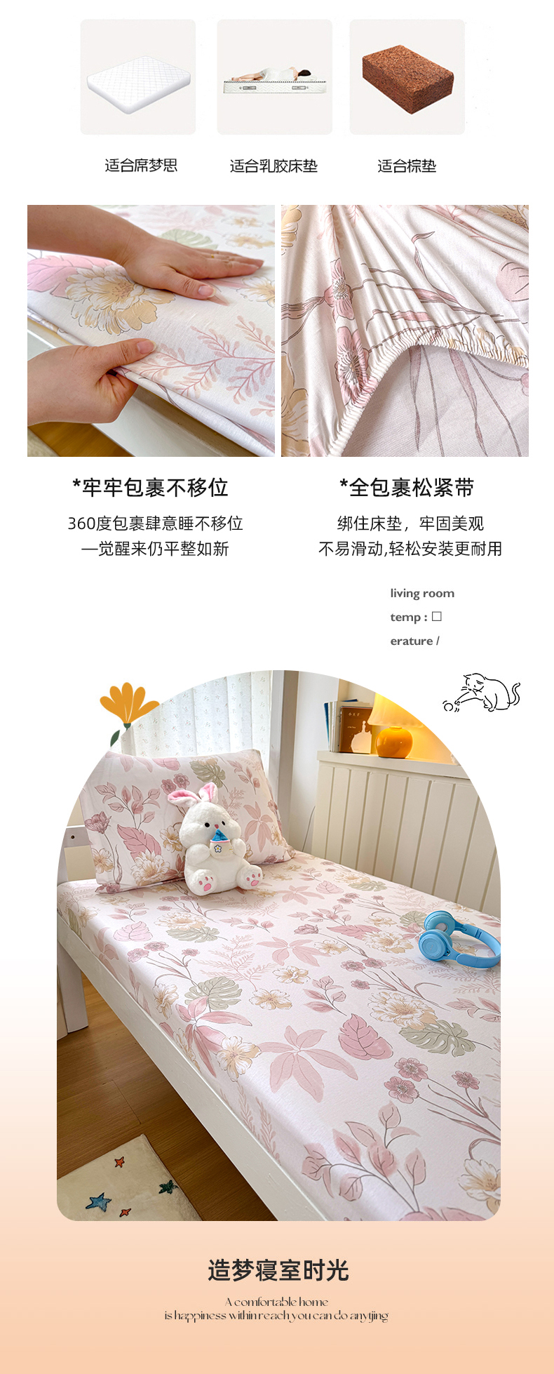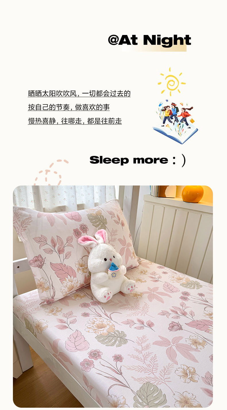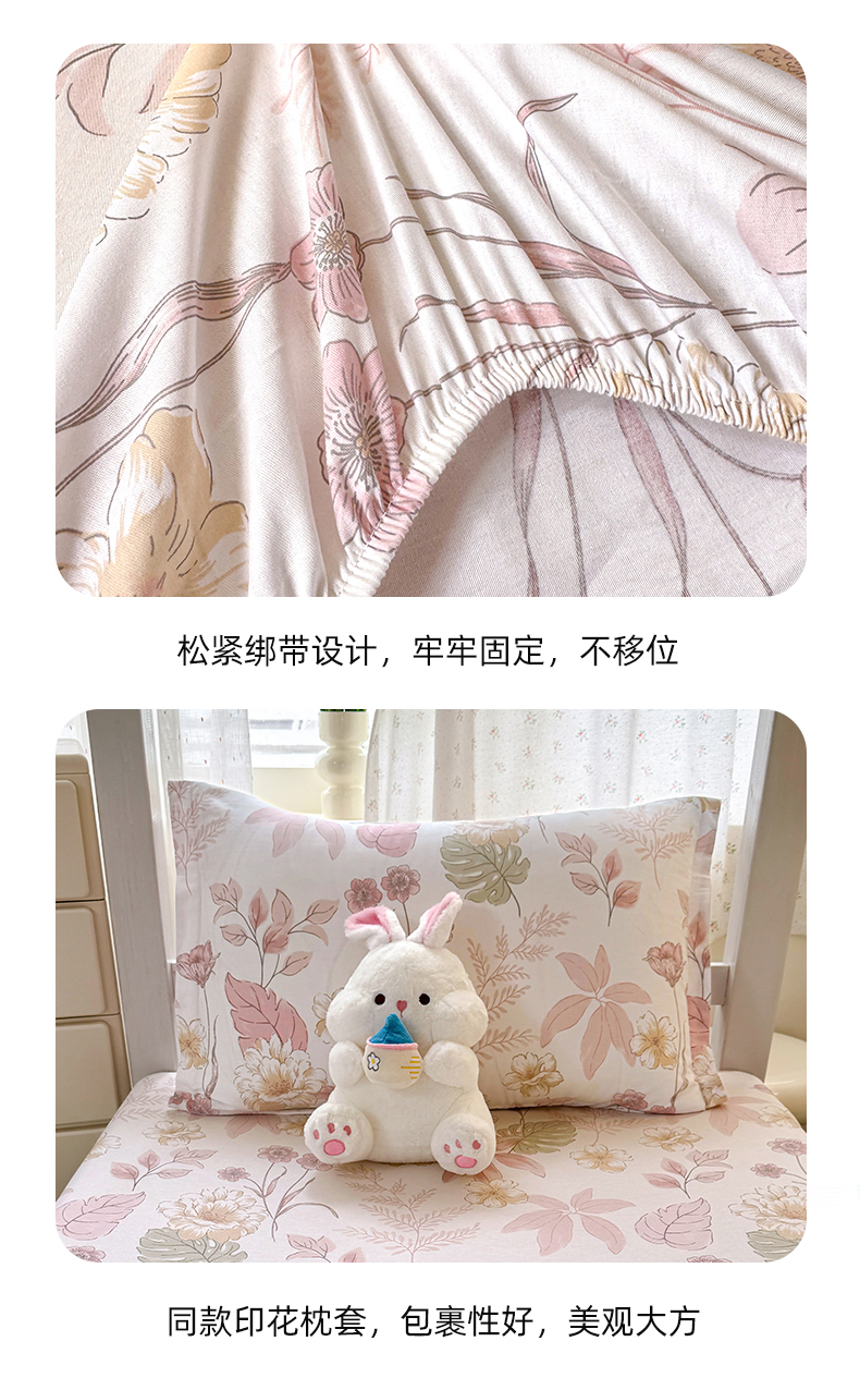 尚帛 2026新款全棉品质喷气印花爆款四件套 多规格套件 单品系列-学生款单床笠 叶柔粉