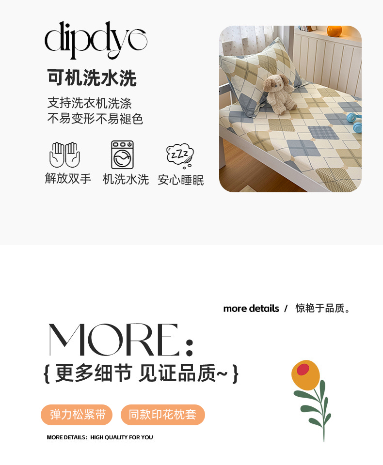 尚帛 2026新款全棉品质喷气印花爆款四件套 多规格套件 单品系列-学生款单床笠 佳丽斯
