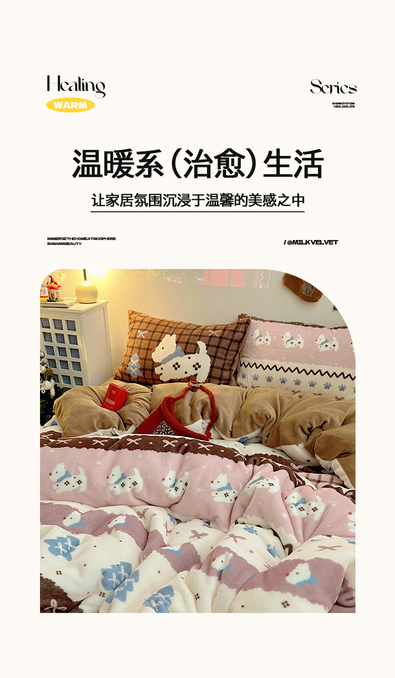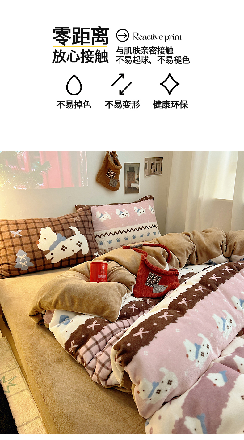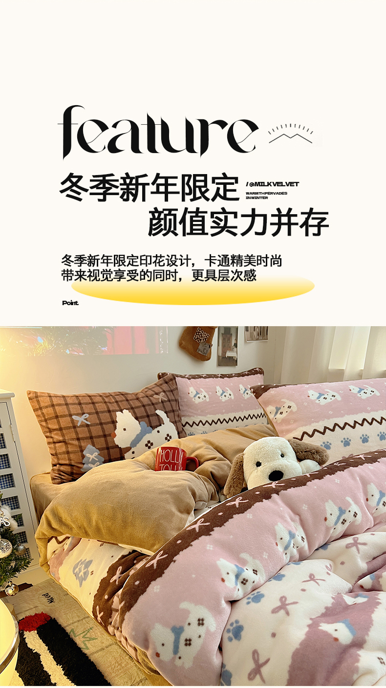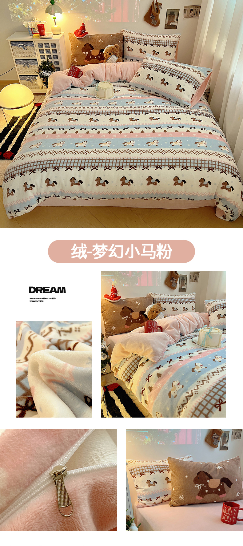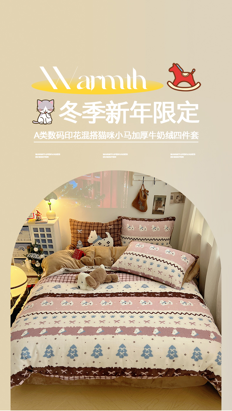 (总)桃子家居 2026新款A类数码印花混搭冬季新年限定猫咪小马加厚牛奶绒四件套