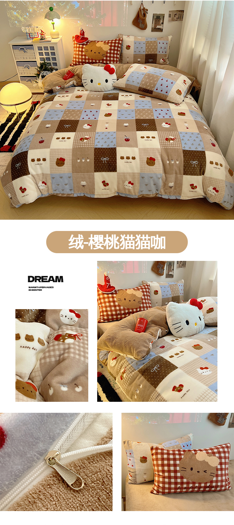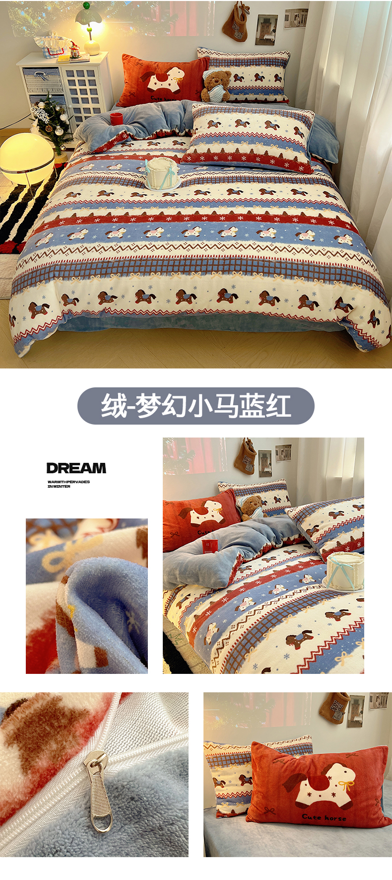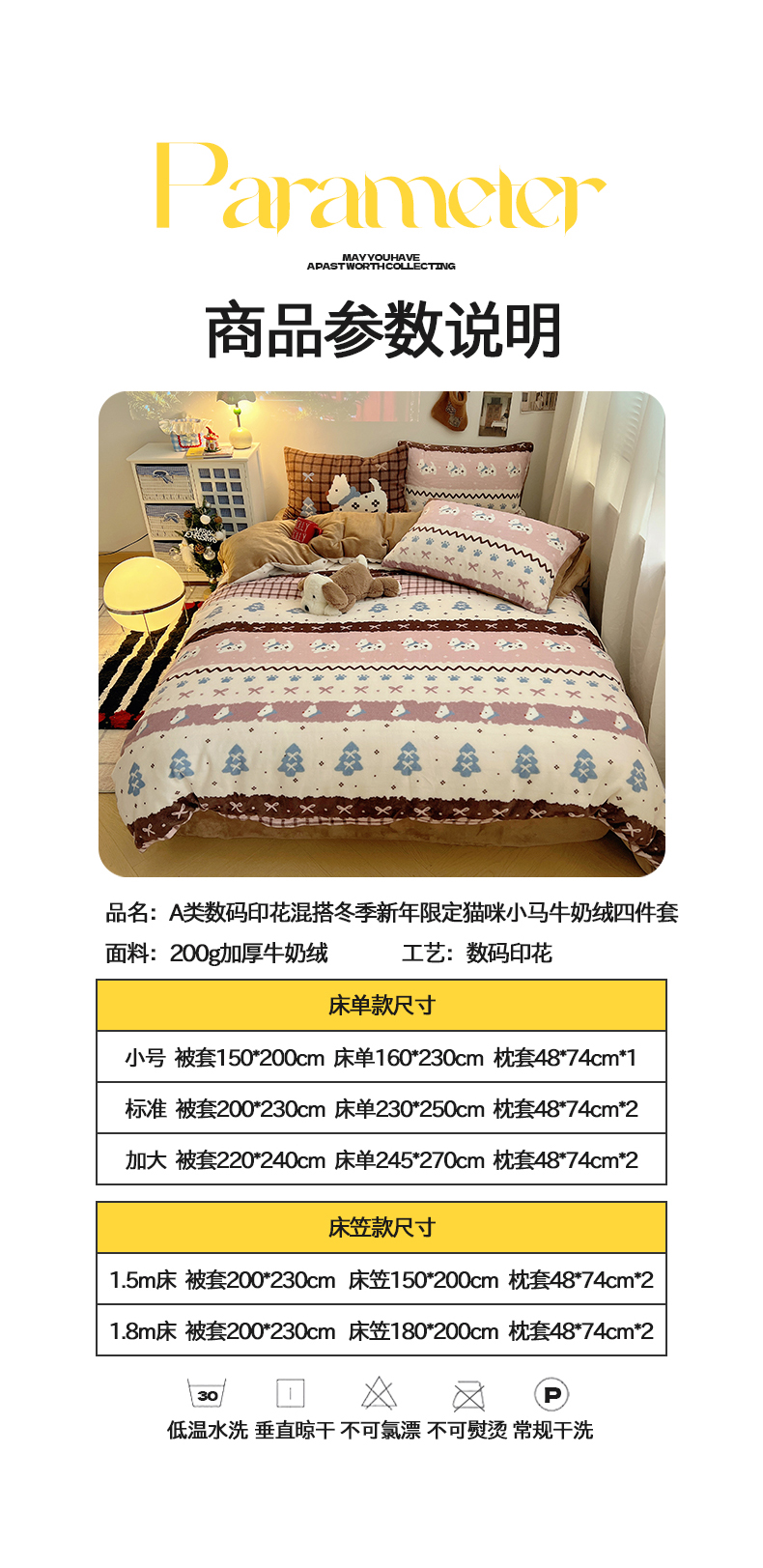商品名称:(总)桃子家居 2026新款A类数码印花混搭冬季新年限定猫咪小马加厚牛奶绒四件套