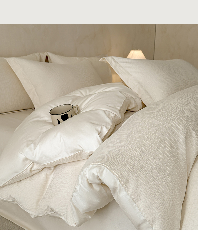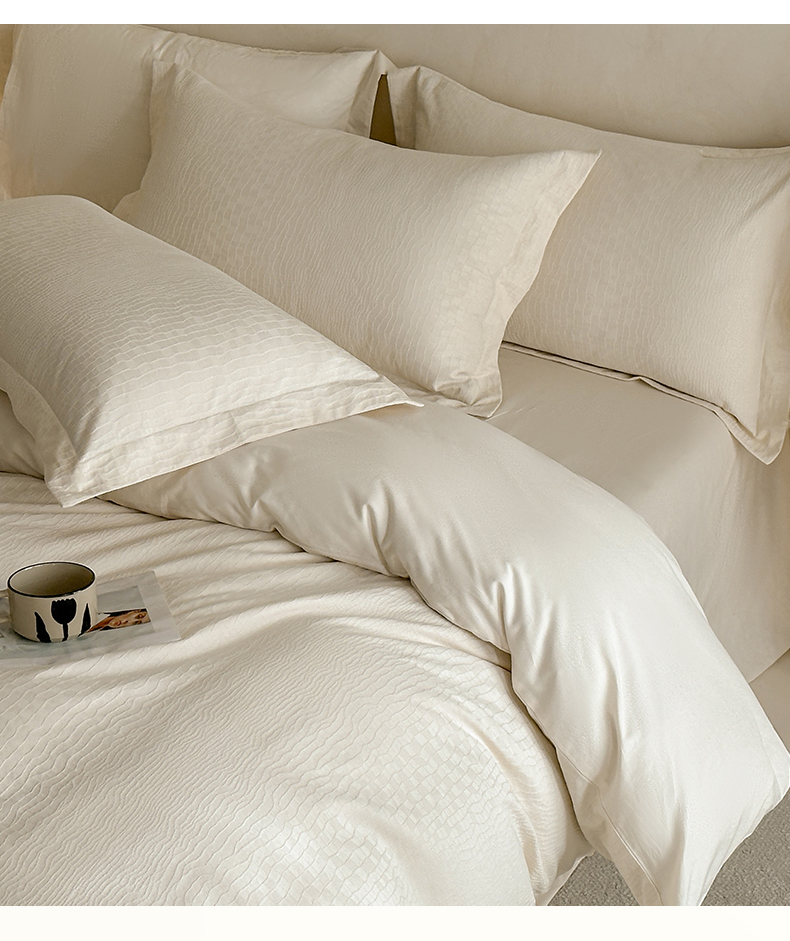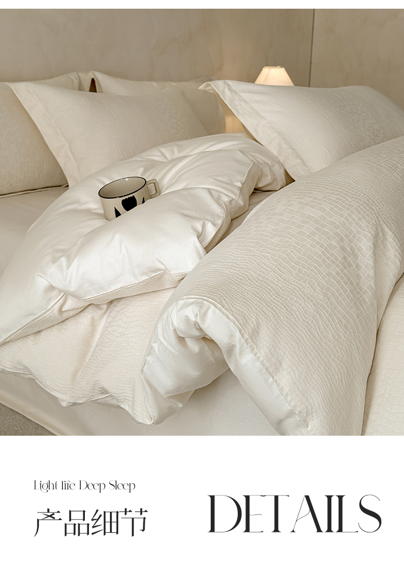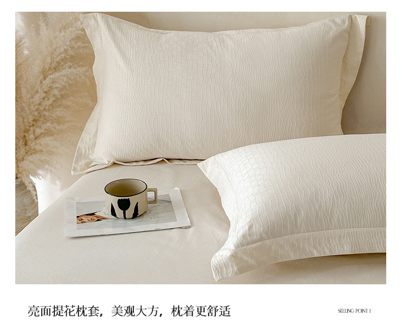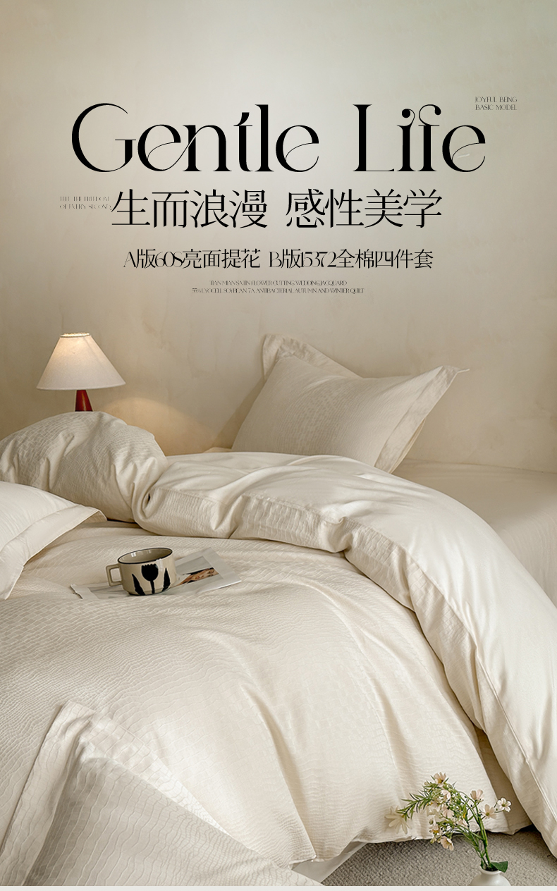 笙意家纺 2026新款A版60S亮面提花B版13372全棉四件套 石烁-奶昔白