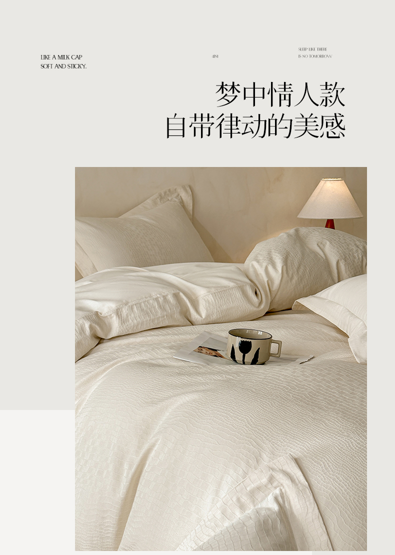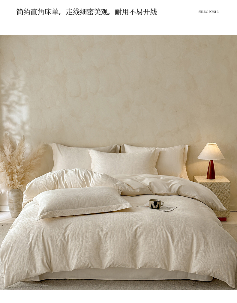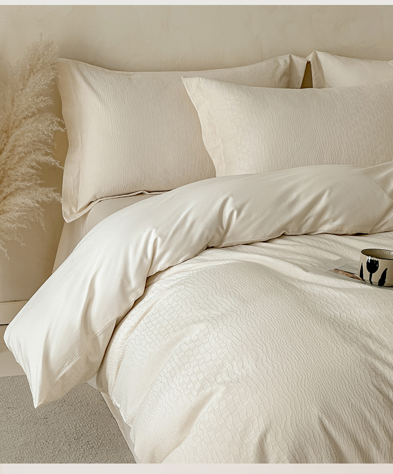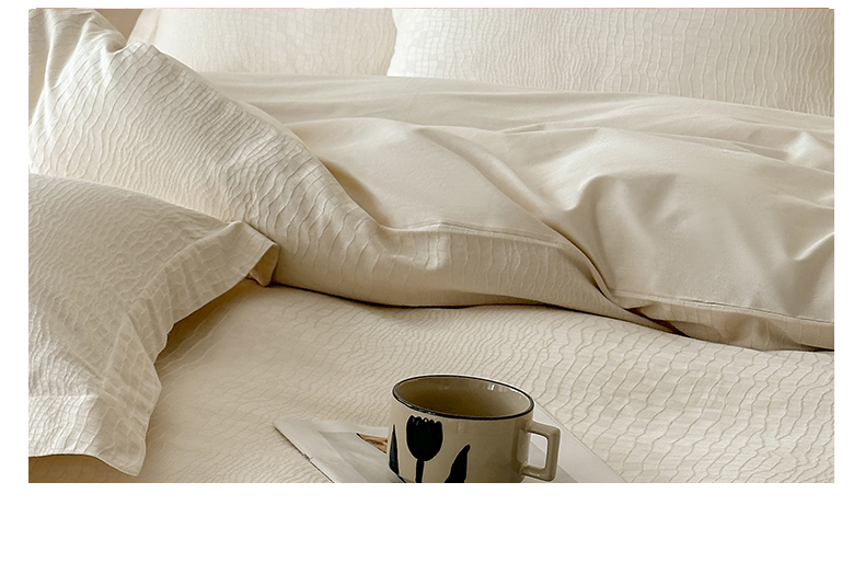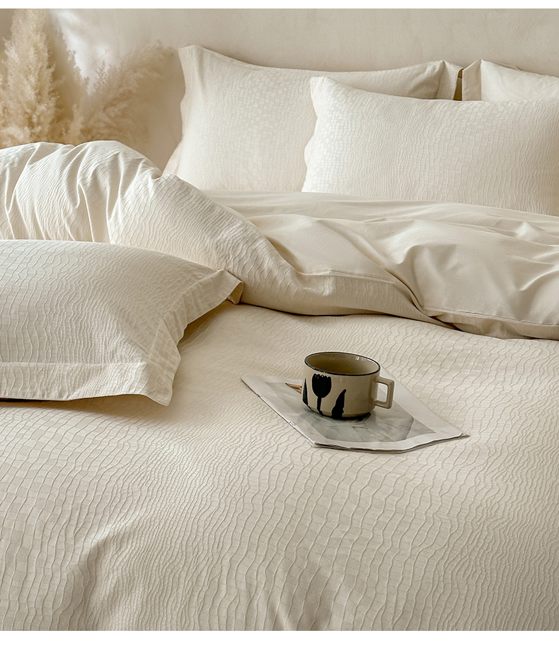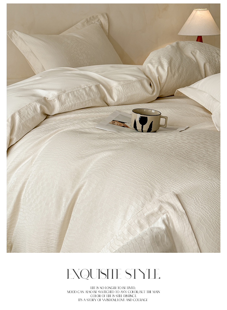 笙意家纺 2026新款A版60S亮面提花B版13372全棉四件套 石烁-奶昔白