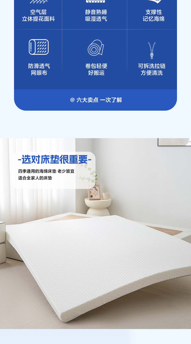 • 91家纺网 家纺一手货源 找家纺 (总)小豚鼠 2025新款高弹记忆海绵垫现代日式床垫,纹理-白,纹理-灰,摇曳-白