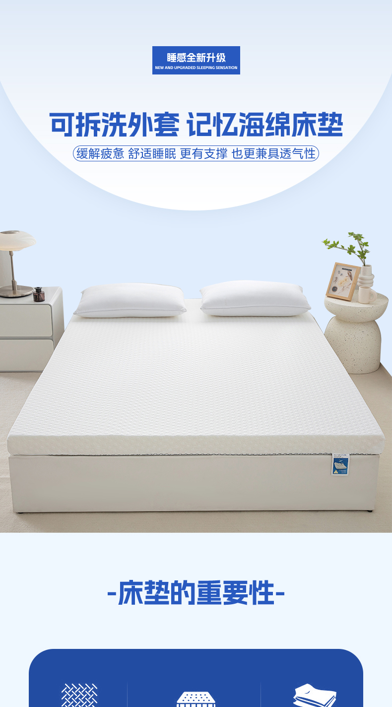 • 91家纺网 家纺一手货源 找家纺 小豚鼠 2025新款记忆海绵床垫床褥榻榻米租房床垫酒店薄垫床垫 方格白