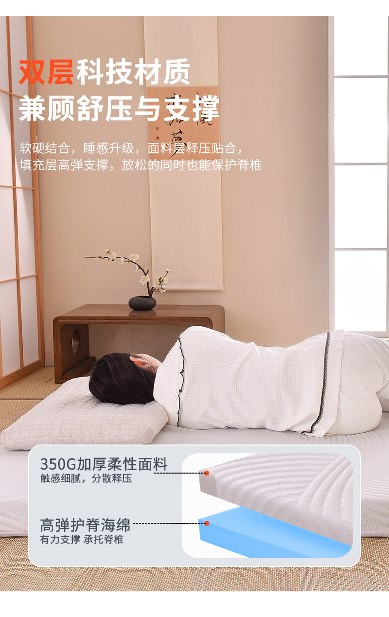 • 91家纺网 家纺一手货源 找家纺 小豚鼠 2025新款高弹记忆海绵垫现代日式床垫 纹理-白