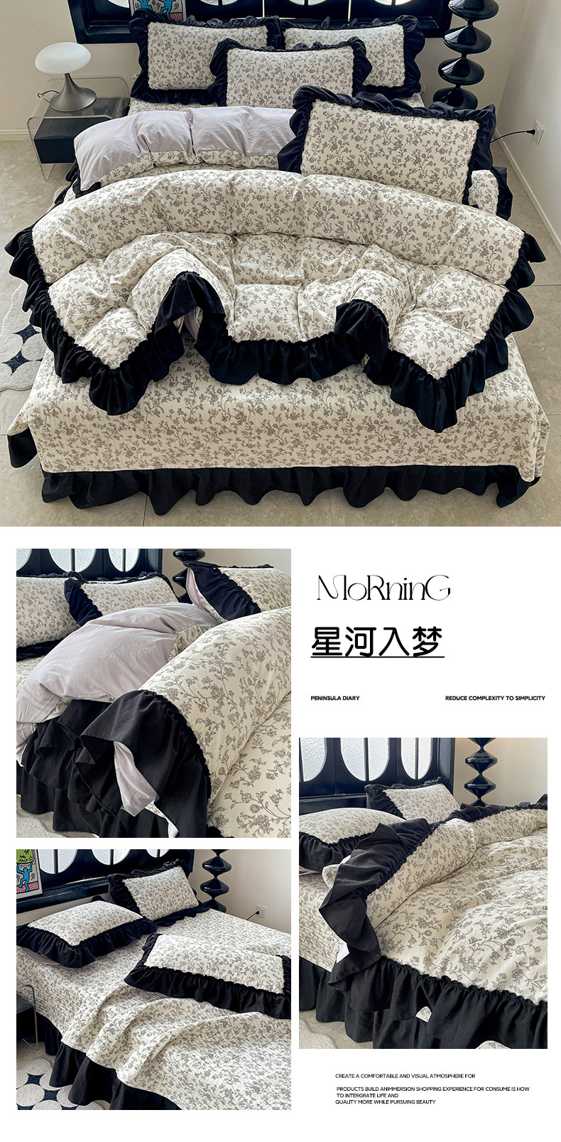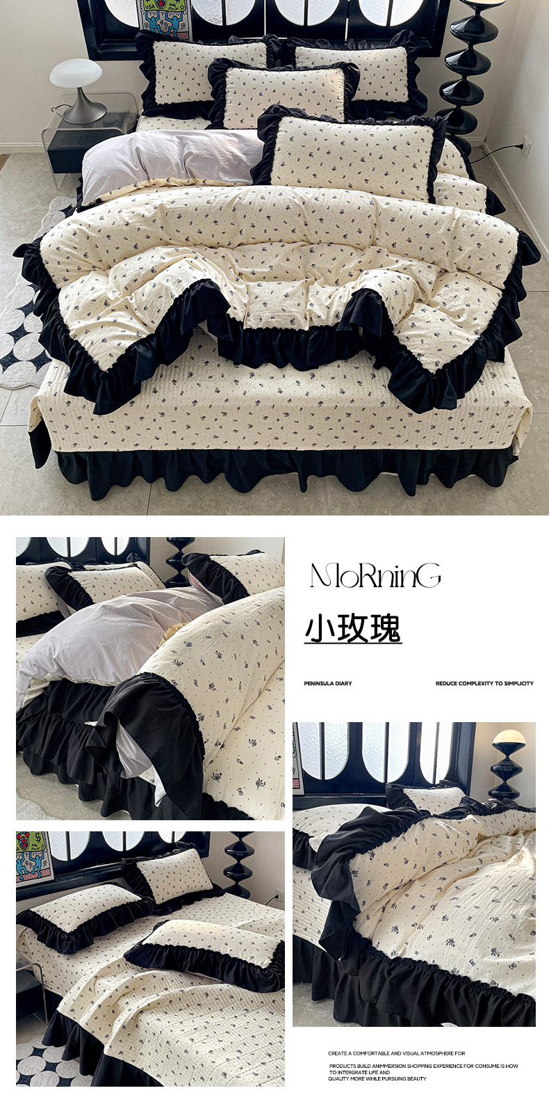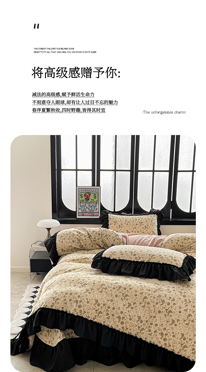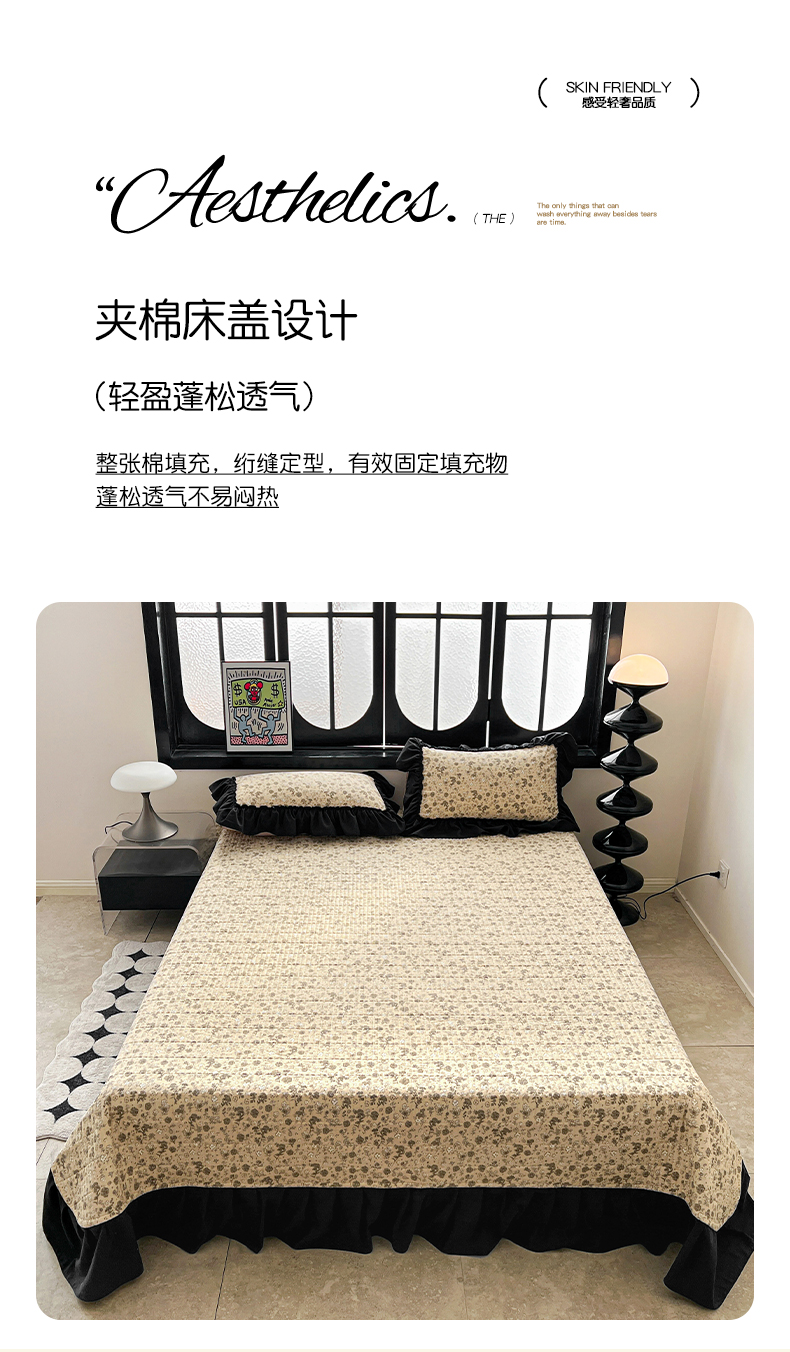 当前位置: 91家纺网 > 商品网购 > 床品套件 > 四件套 > 其它四件套 > 富米莱(原臻工厂) 2026新款法式赫本风大花边A类古法仿棉云感纱床盖床裙四件套 雾蓝小熊