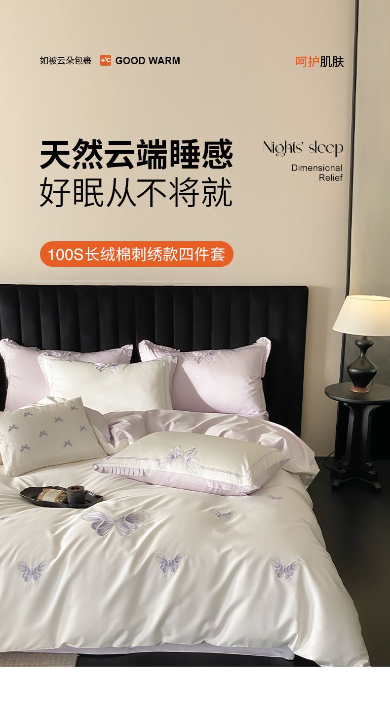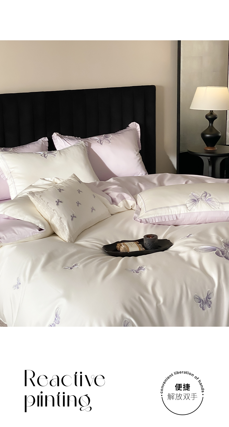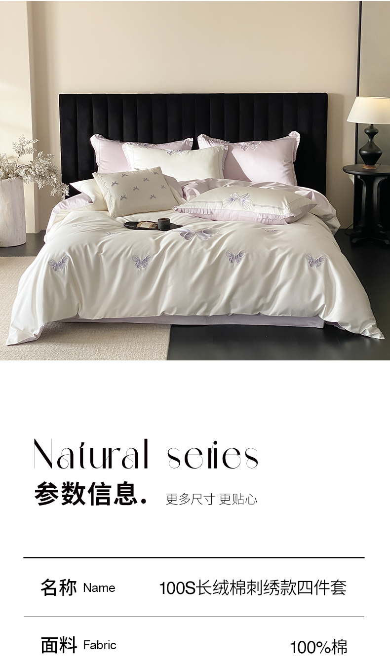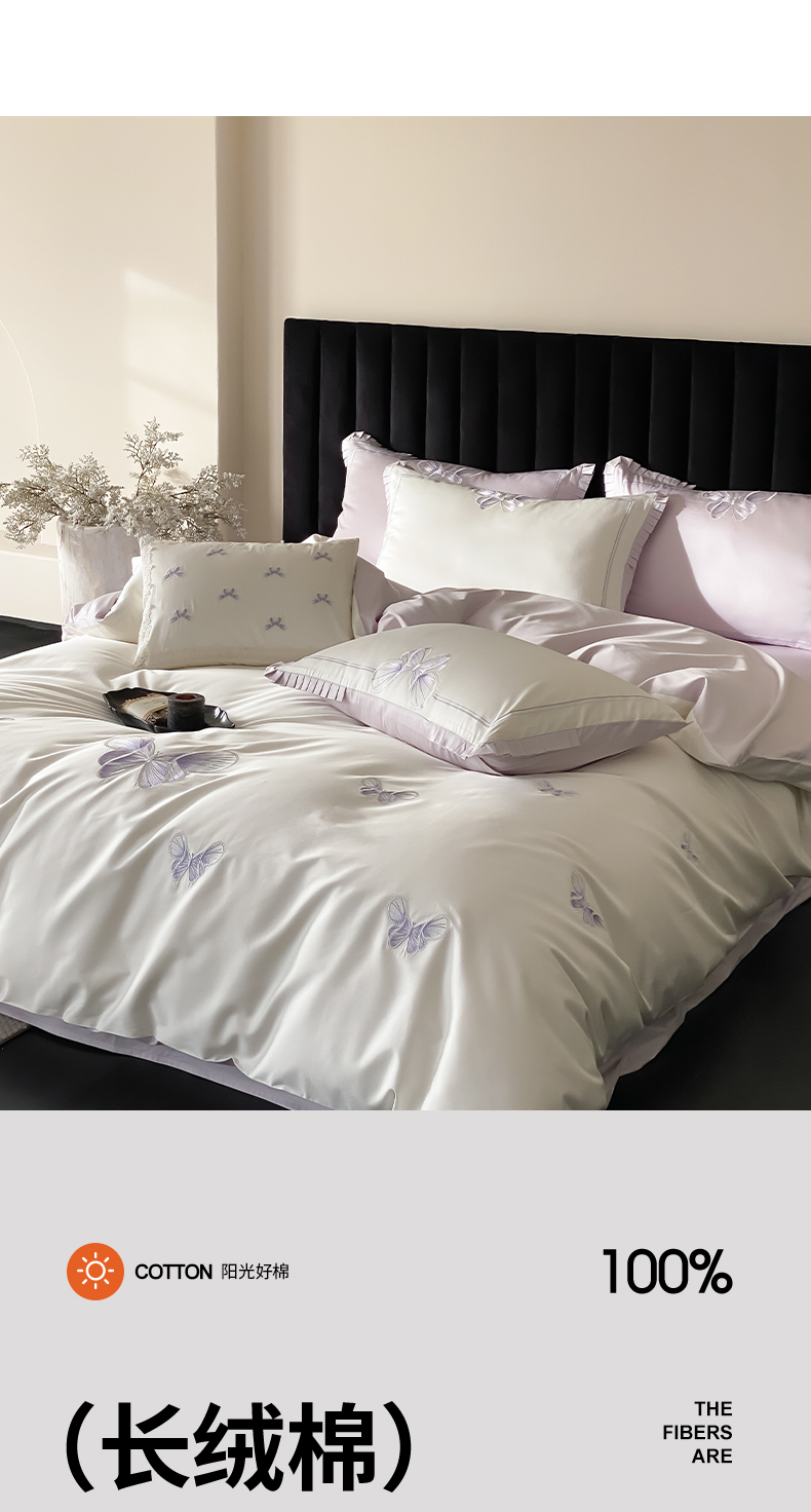 当前位置: 91家纺网 > 商品网购 > 床品套件 > 四件套 > 长绒棉四件套 > 极简 2026春夏新品100S长绒棉精密刺绣四件套-梦幻蝶语 梦幻蝶语-白