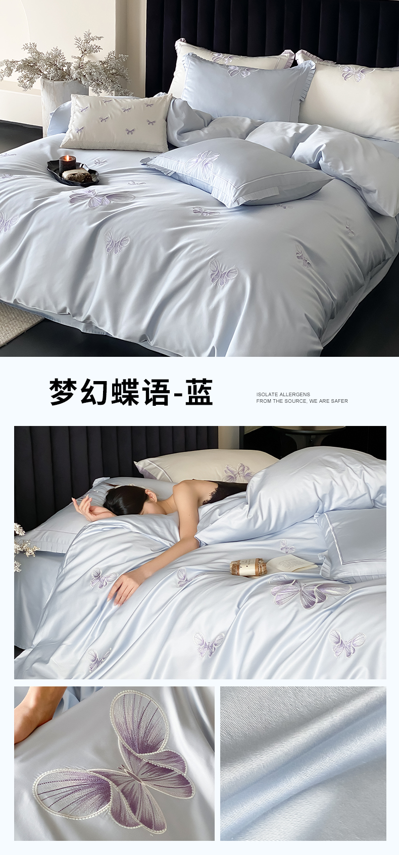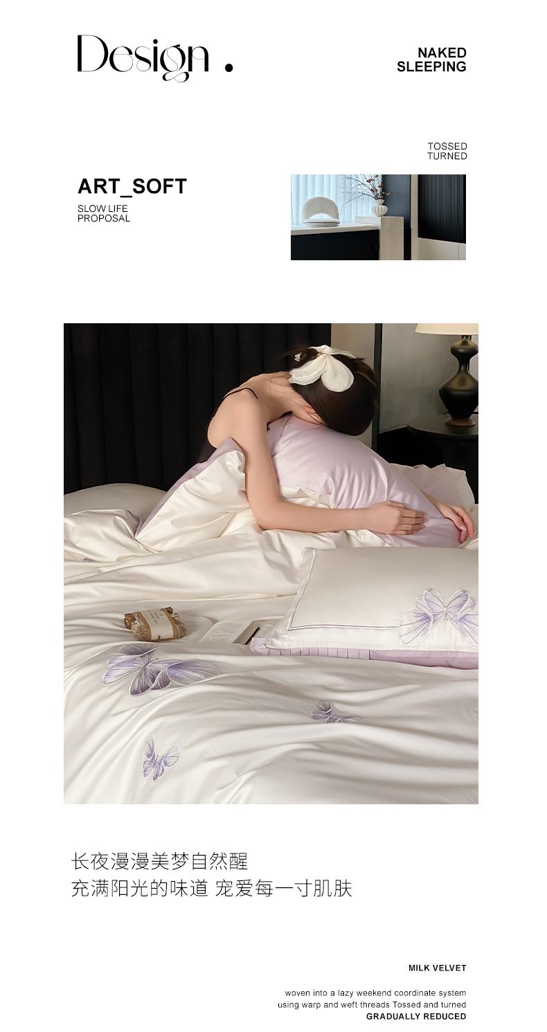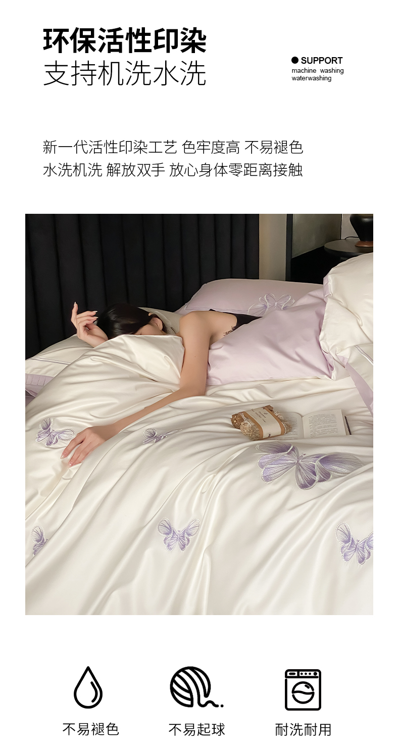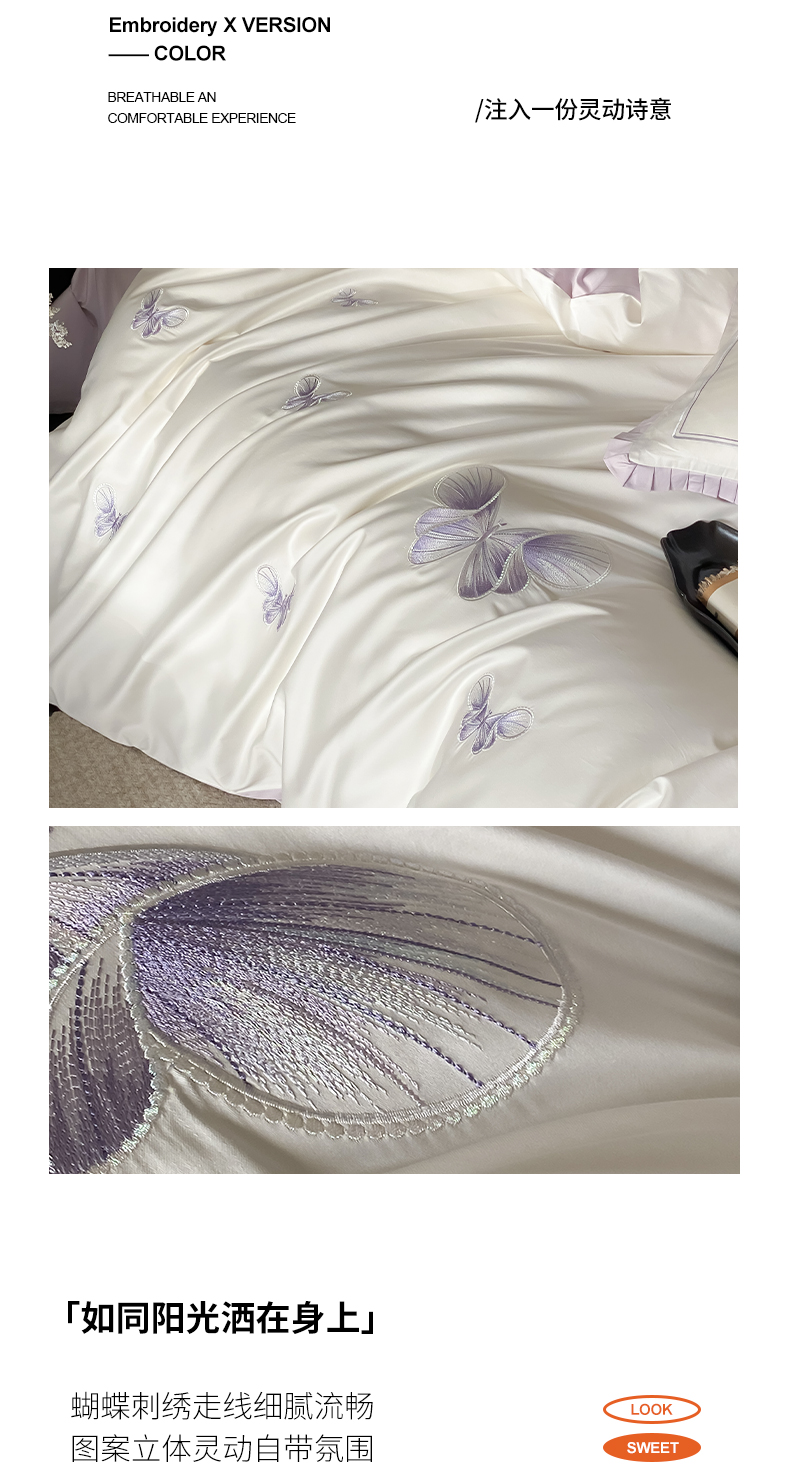 当前位置: 91家纺网 > 商品网购 > 床品套件 > 四件套 > 长绒棉四件套 > 极简 2026春夏新品100S长绒棉精密刺绣四件套-梦幻蝶语 梦幻蝶语-白