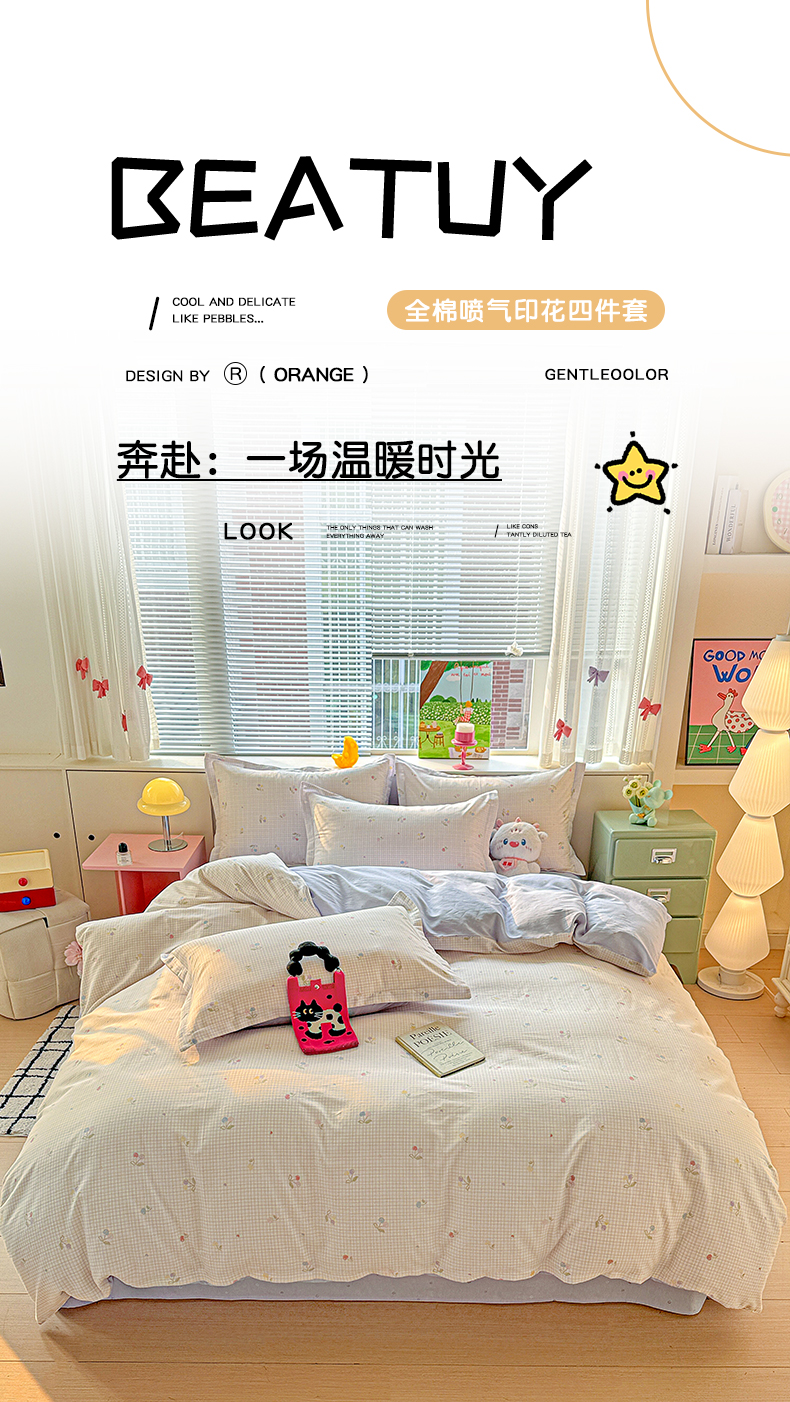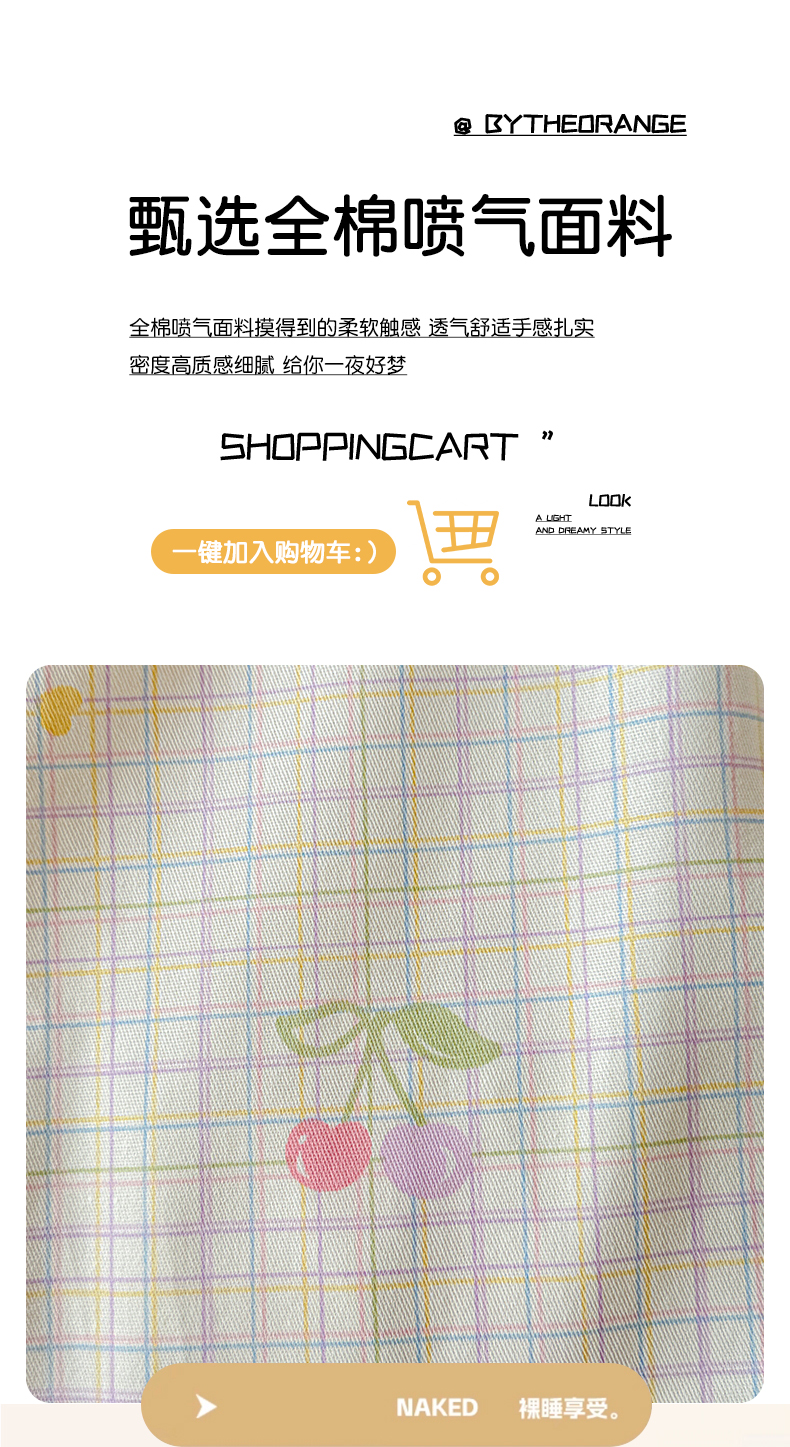 当前位置: 91家纺网 > 商品网购 > 床品套件 > 四件套 > 全棉普通四件套 > 卡普纯棉全棉四件套13070喷气床单款床笠款三件套 樱桃小可