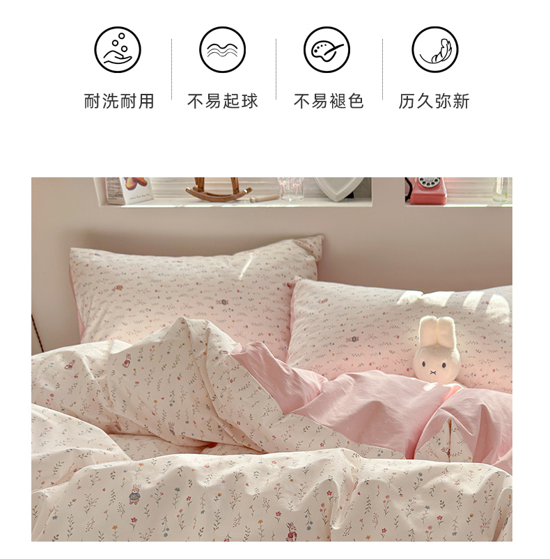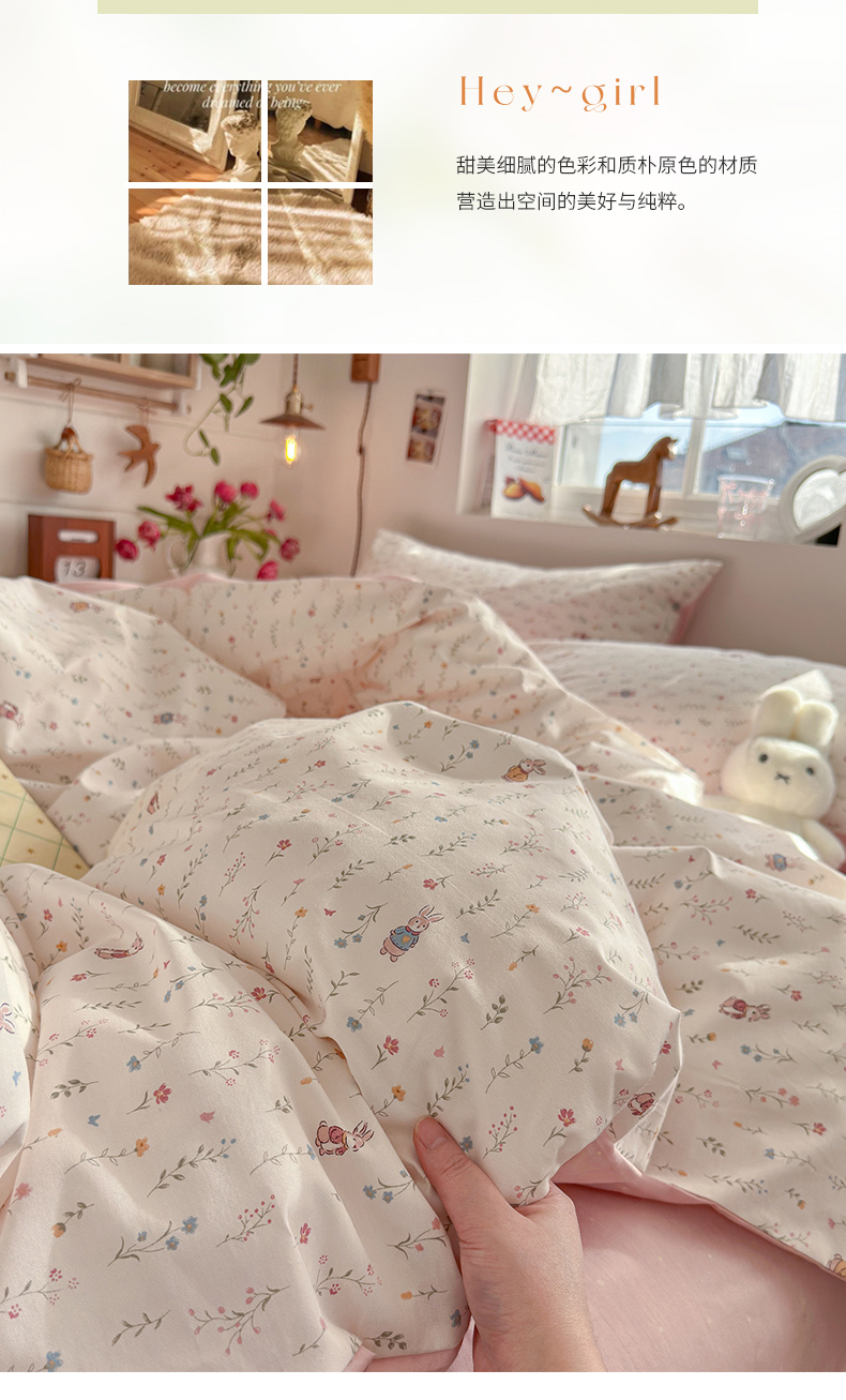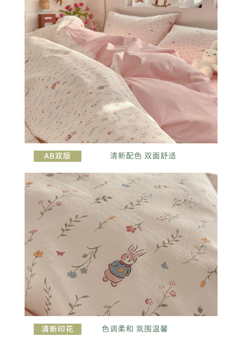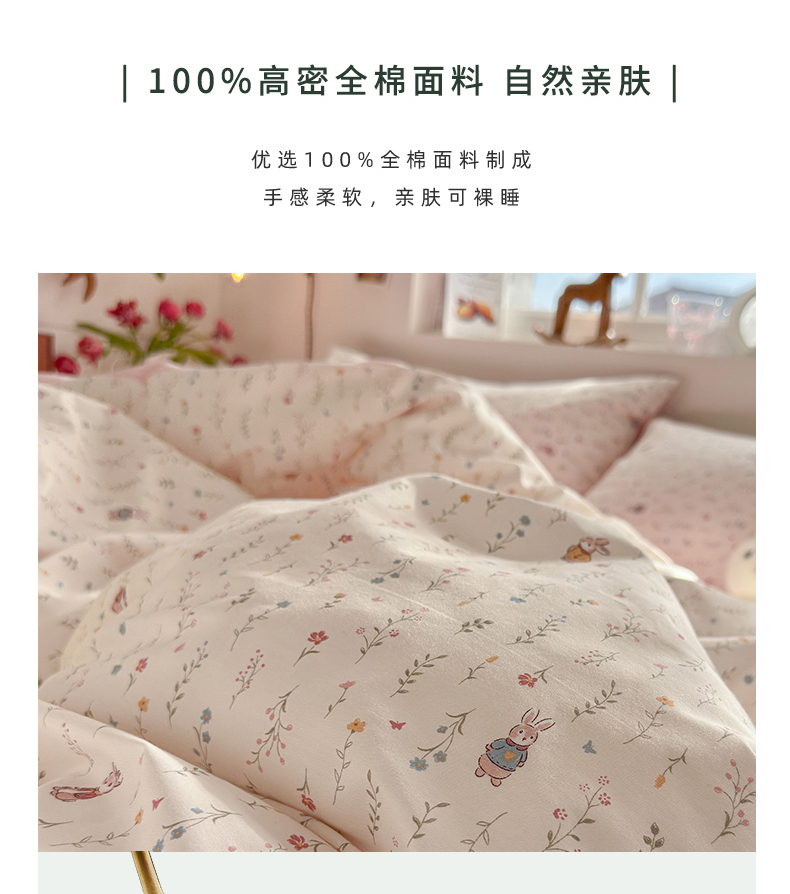 当前位置: 91家纺网 > 商品网购 > 床品套件 > 四件套 > 全棉普通四件套 > 捌月 2026新款奶油风全棉印花四件套 花间小兔