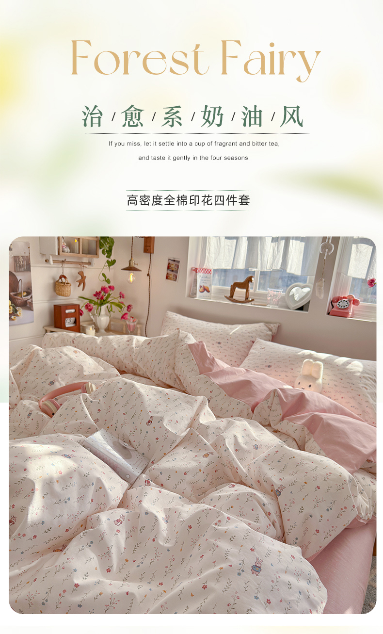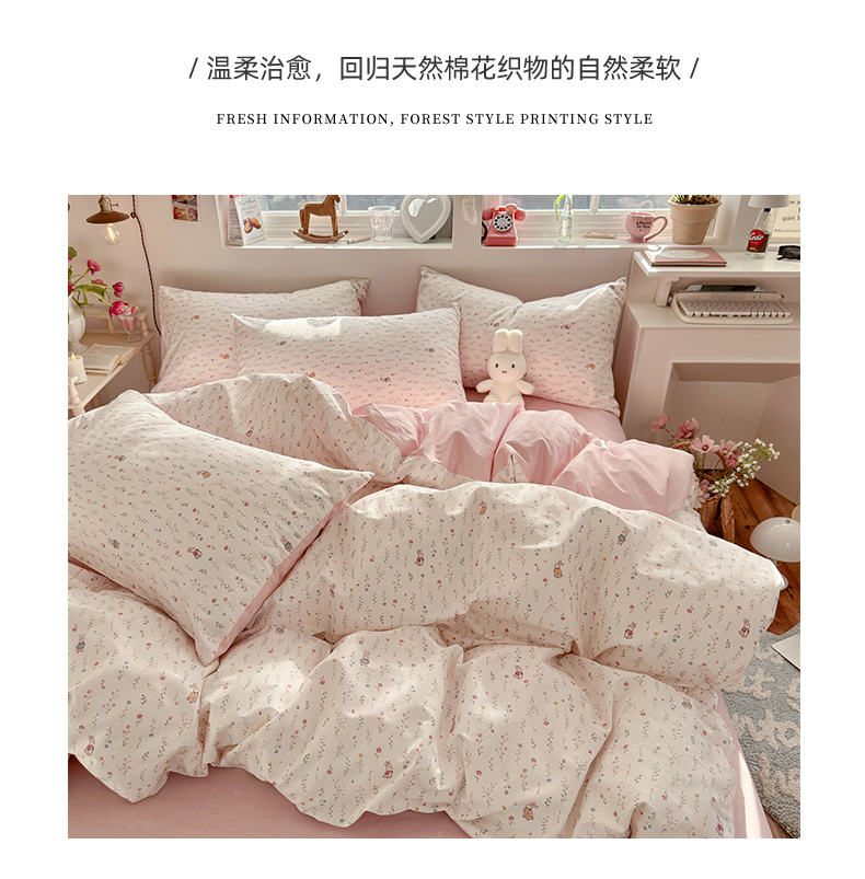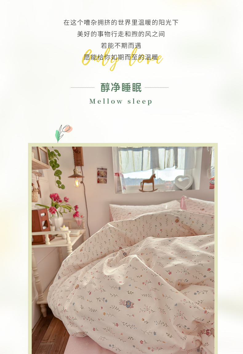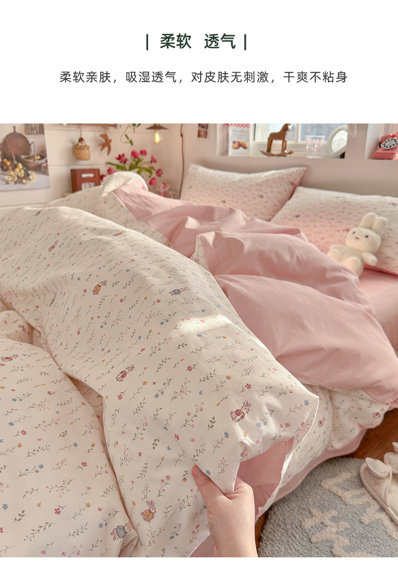 当前位置: 91家纺网 > 商品网购 > 床品套件 > 四件套 > 全棉普通四件套 > 捌月 2026新款奶油风全棉印花四件套 花间小兔