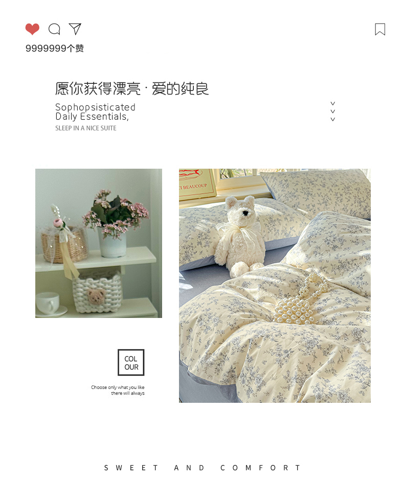 当前位置: 91家纺网 > 商品网购 > 床品套件 > 四件套 > 全棉普通四件套 > 瑞莱 2026新款全棉印花13070花卉系列四件套 沉香