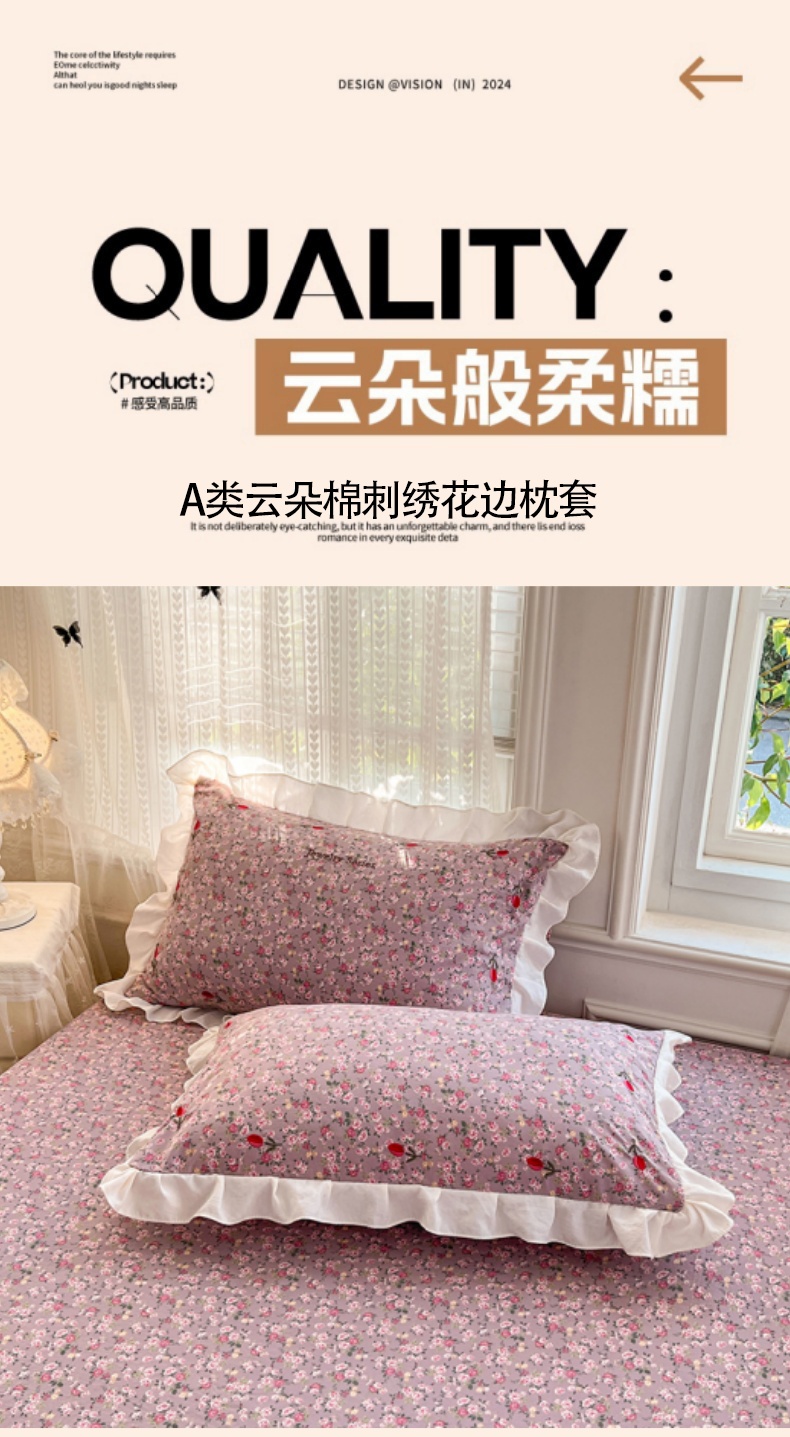 48x74cm【云朵棉刺绣花边枕套】/对 | ¥19.00 |