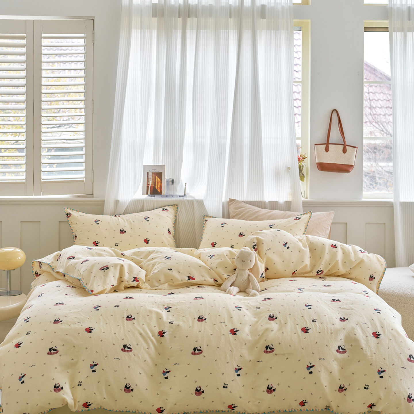 洋铭区(原狠狠爱) 2026新款春季全棉彩边双层纱四件套 花朵兔兔