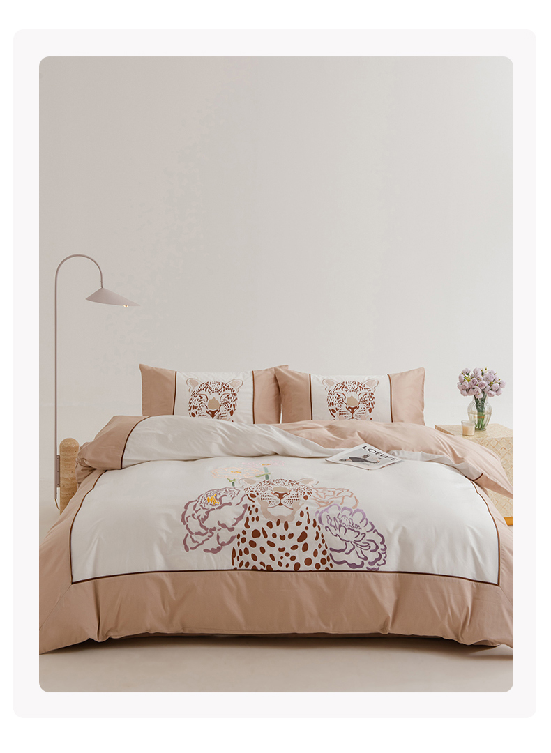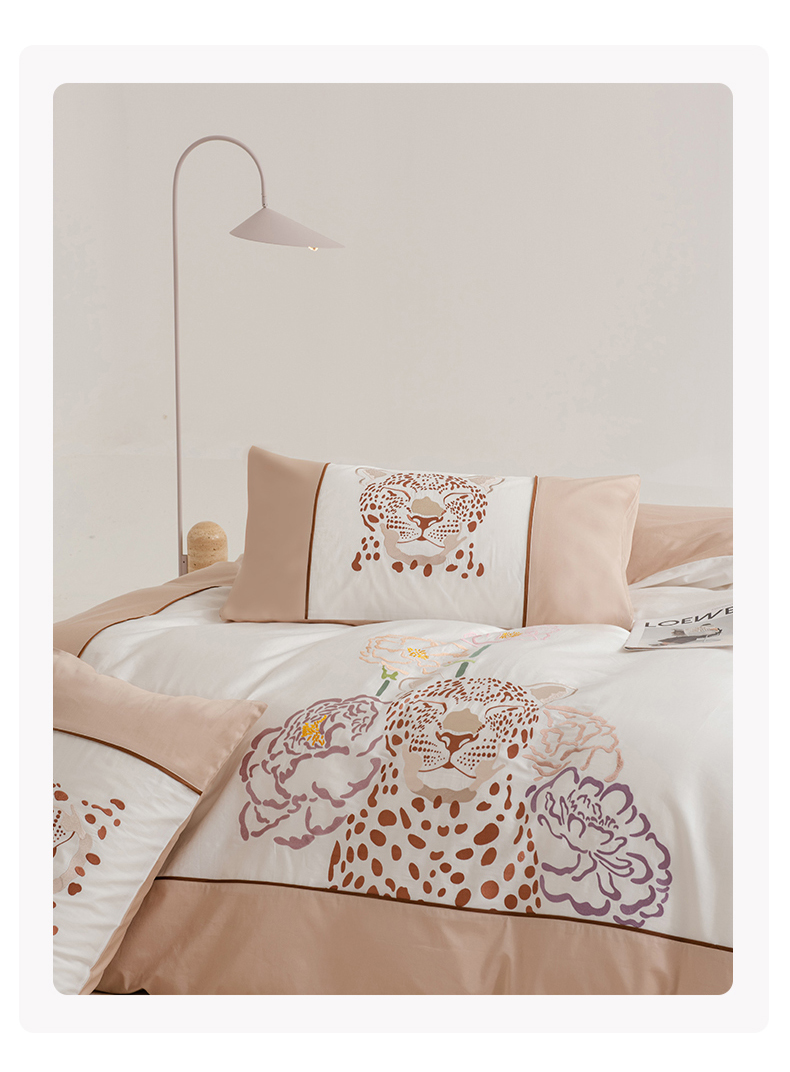 波比可可 2026新款50s长绒棉纯棉全棉居家轻奢四件套 豹富