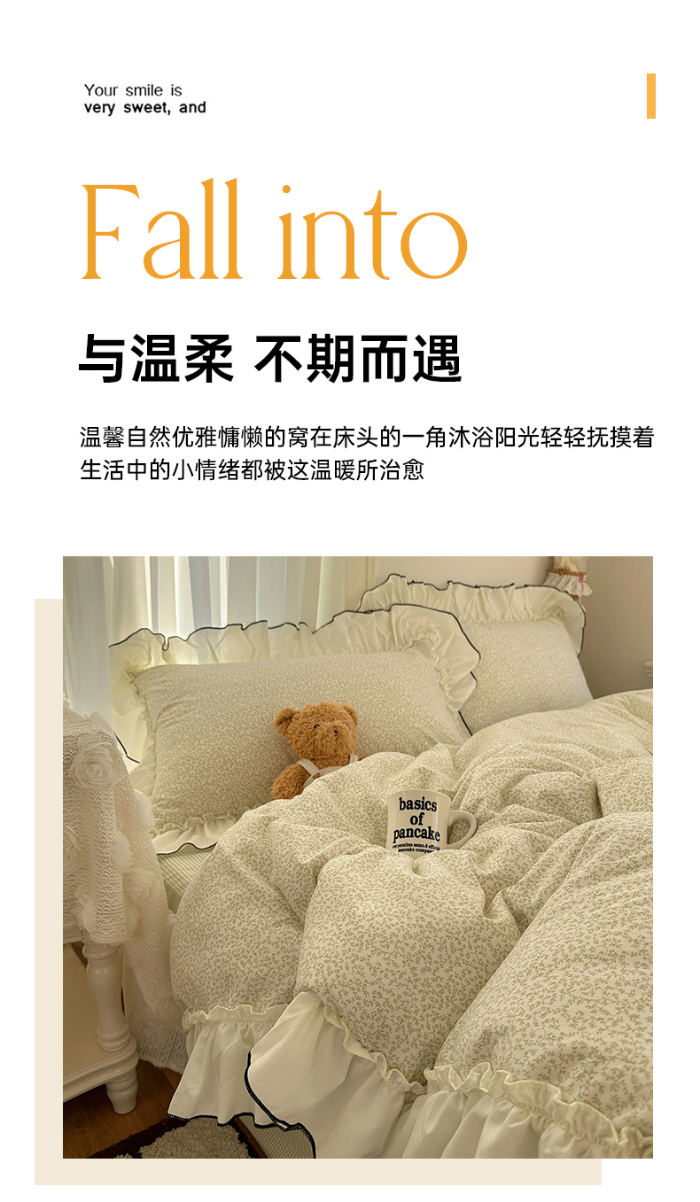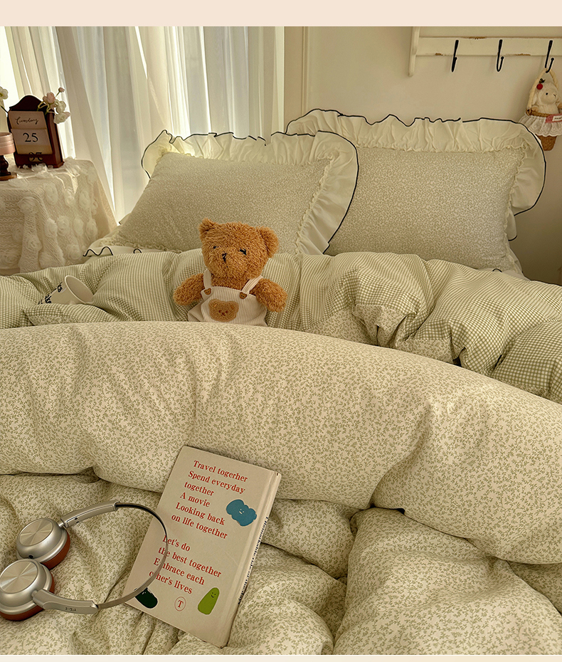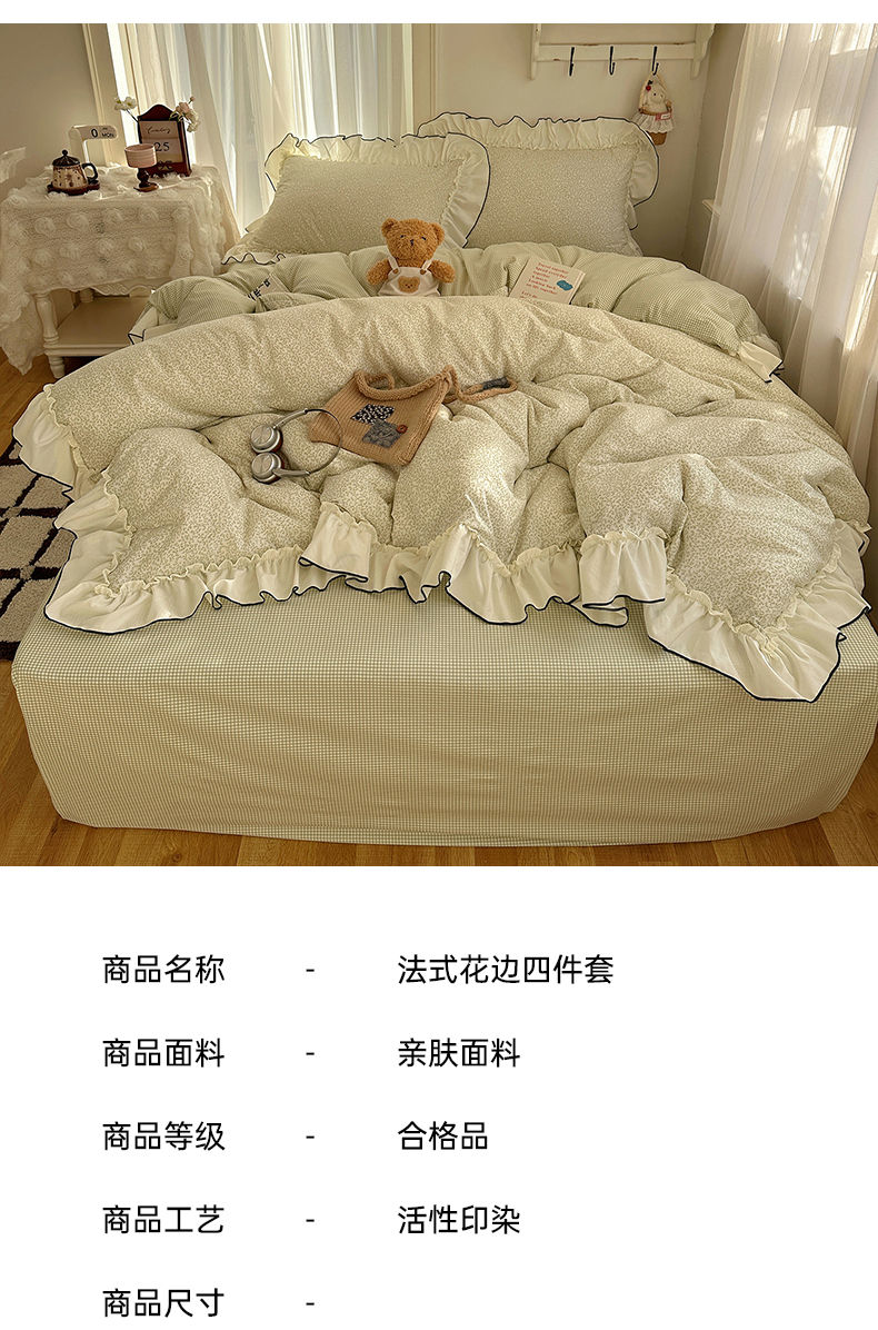 当前位置: 91家纺网 > 商品网购 > 床品套件 > 四件套 > 其它四件套 > 沐芷 2026 【提供买家秀】法式风花边四件套A类仿棉 简约小清新床上用品被罩被套 花边恋曲-绿