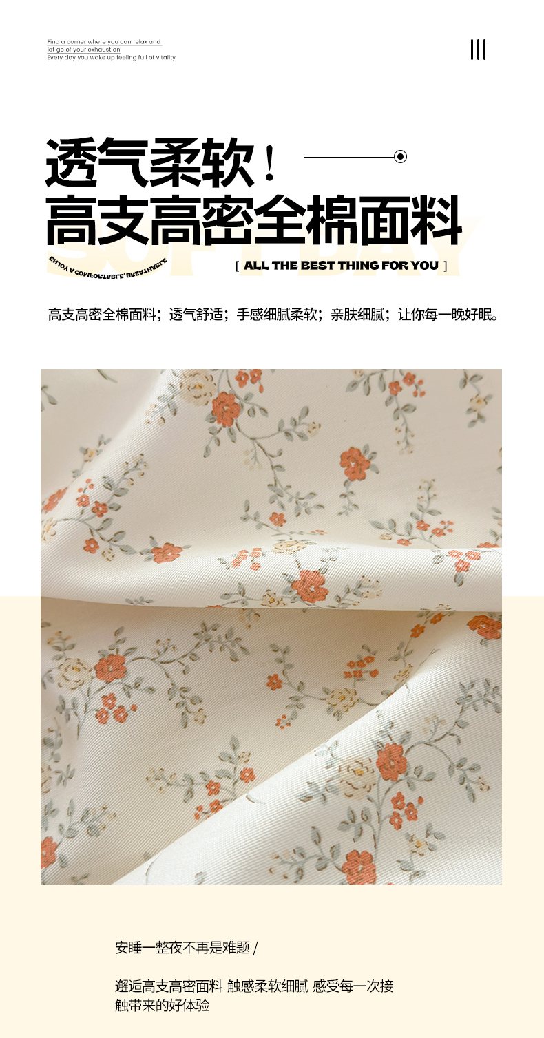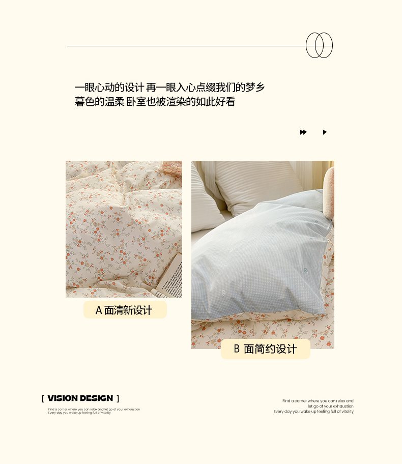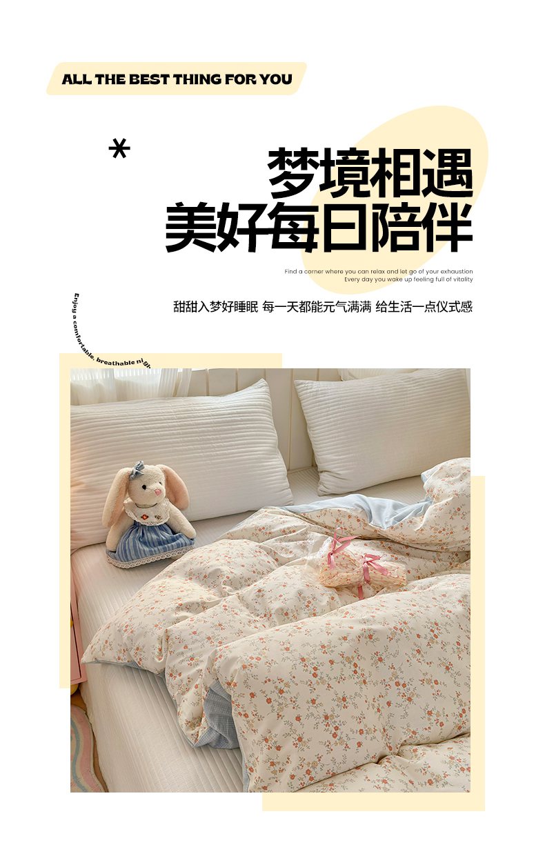 • 91家纺网 家纺一手货源 找家纺 梵克保罗 2026春夏新款ins小清新40支全棉13372四件套学生三件套单被套单枕套系列-第二批(单被套) 沫汐