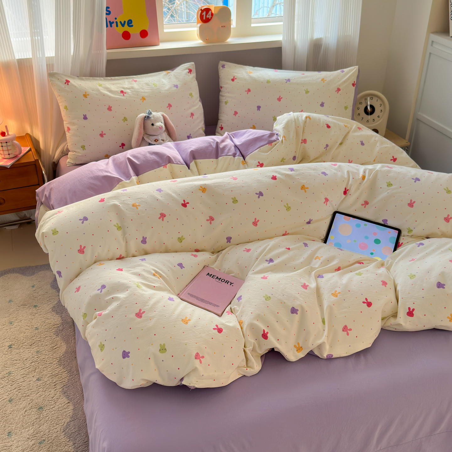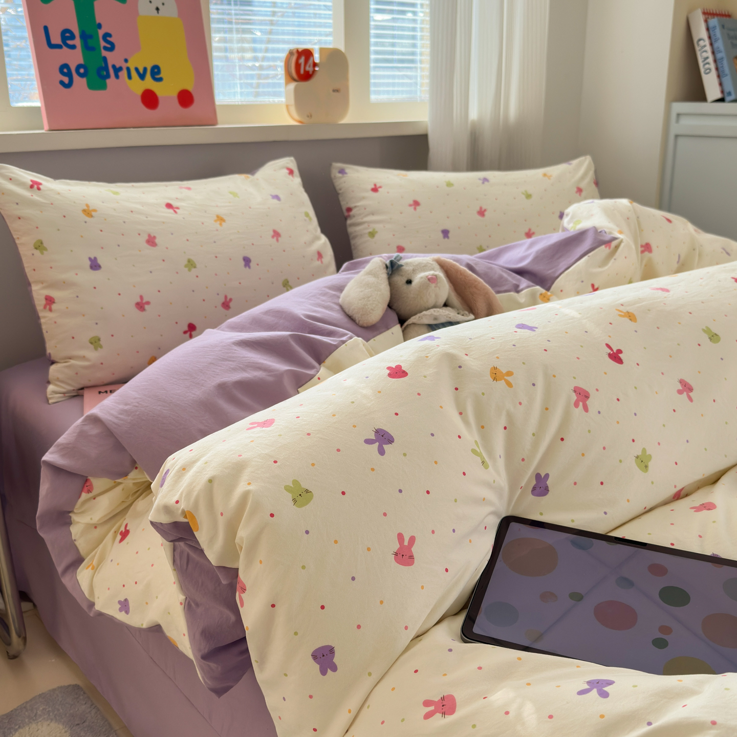 商品名称:德比尔斯 2026新款古法水洗仿棉云感棉小布袋四件套 七彩兔