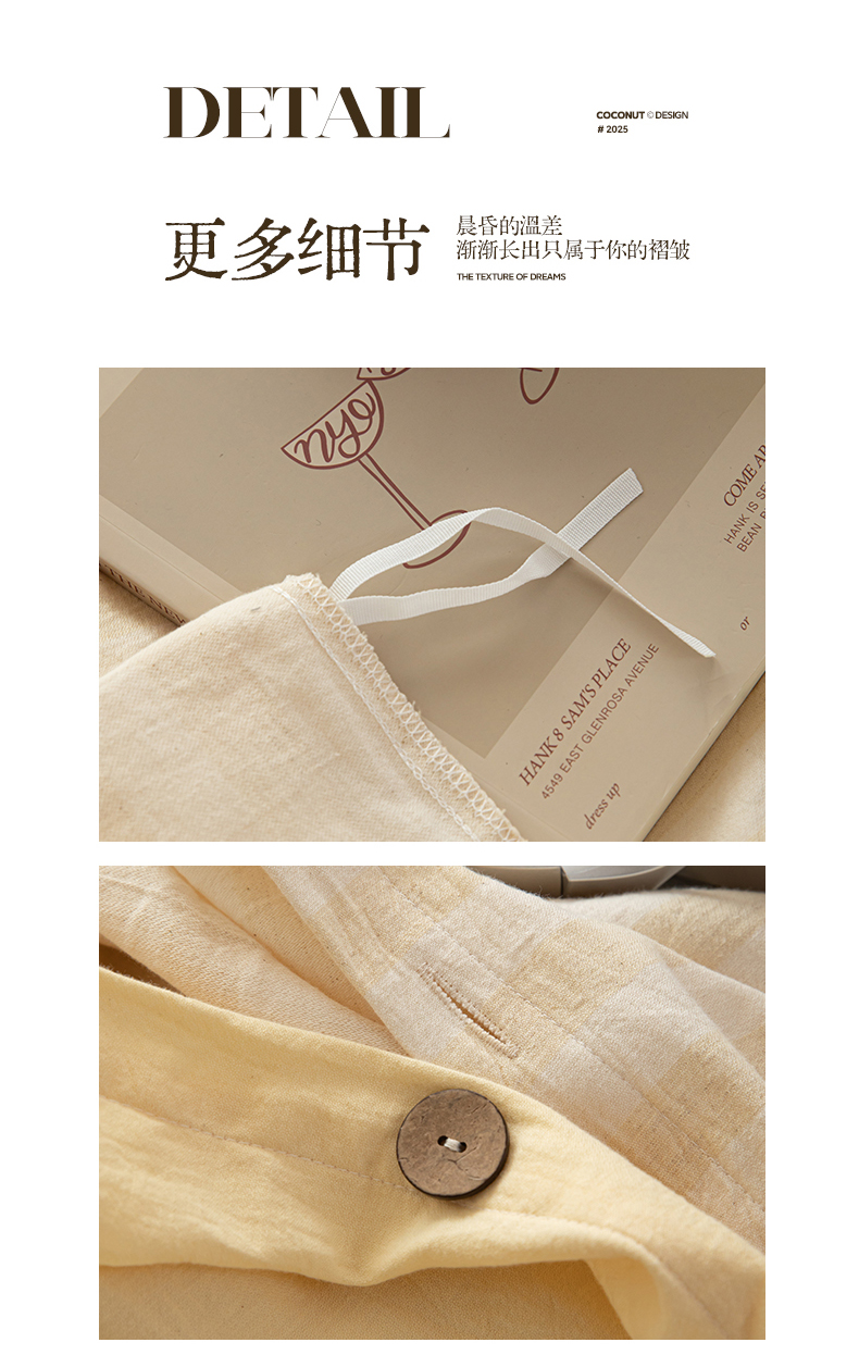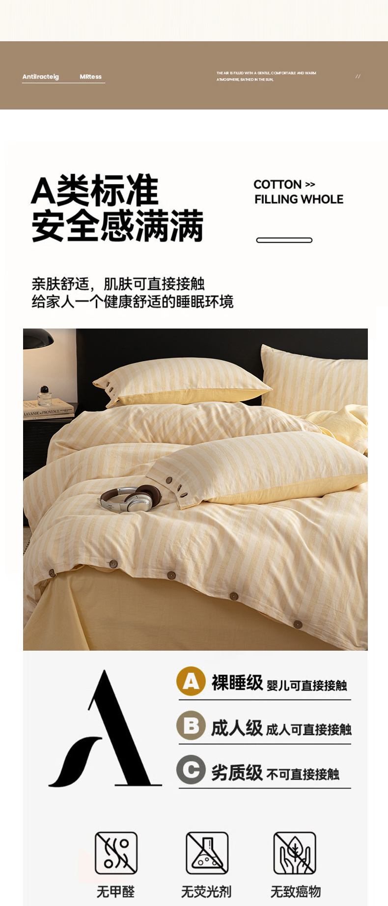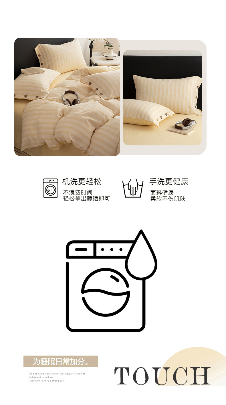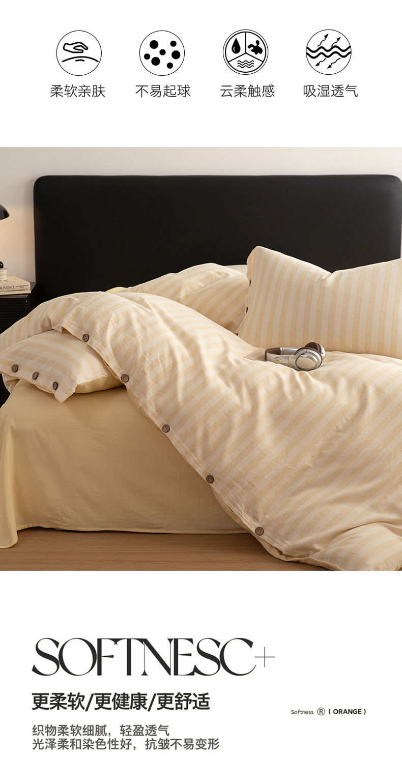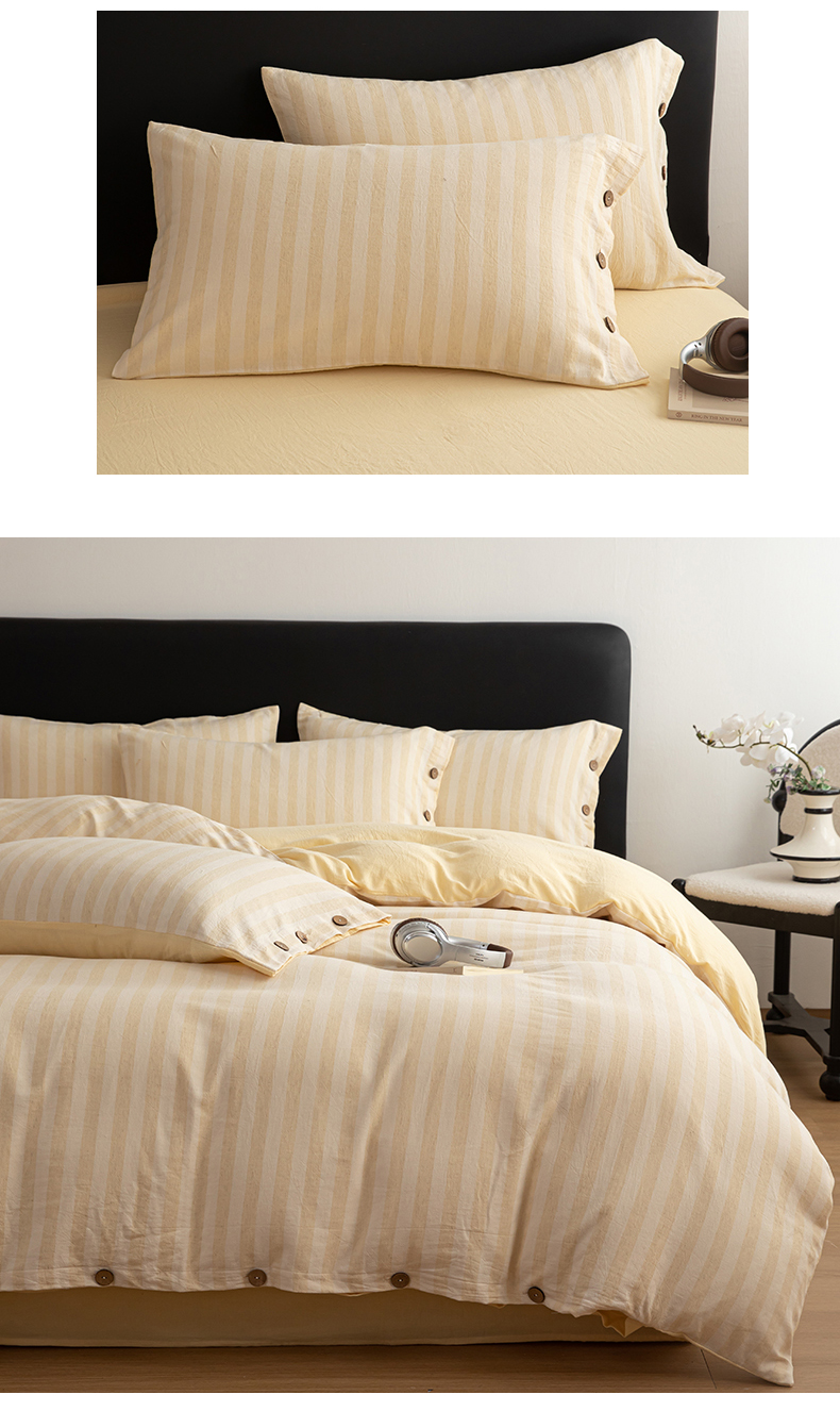 当前位置: 91家纺网 > 商品网购 > 床品套件 > 四件套 > 棉麻四件套 > 女子家纺 2026新款A类棉麻纽扣款四件套--条纹格子系列 黄条-暖梦