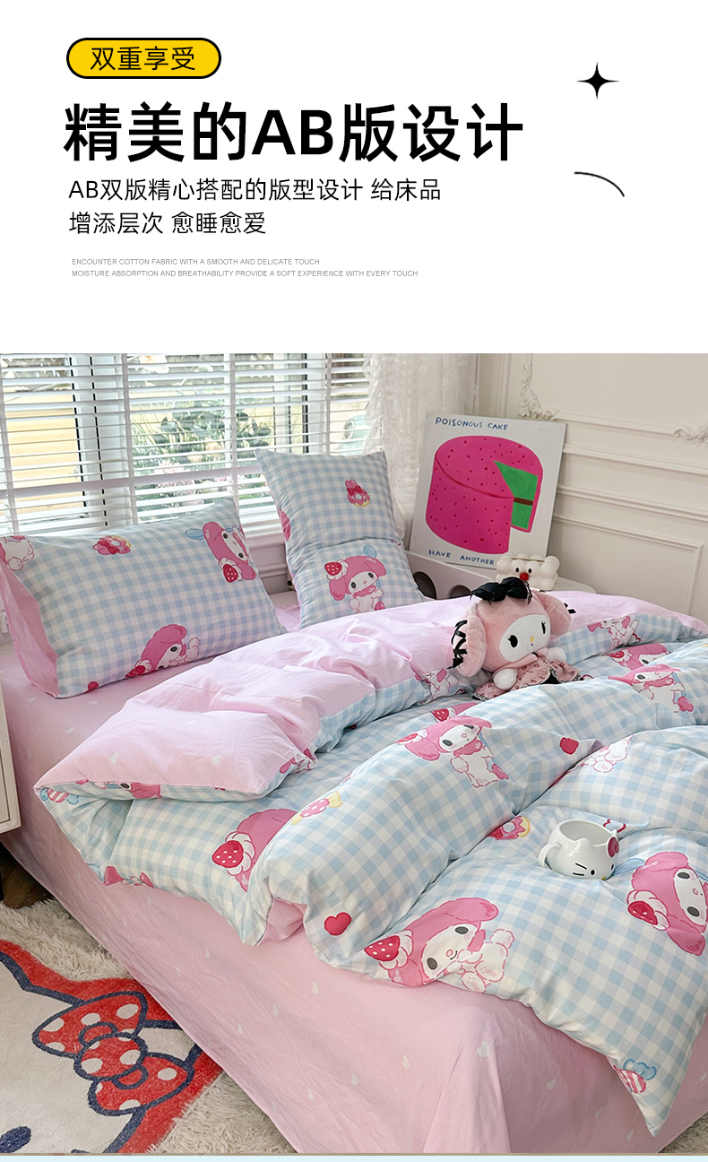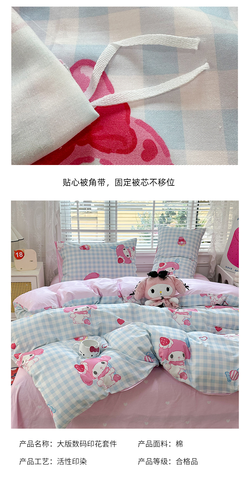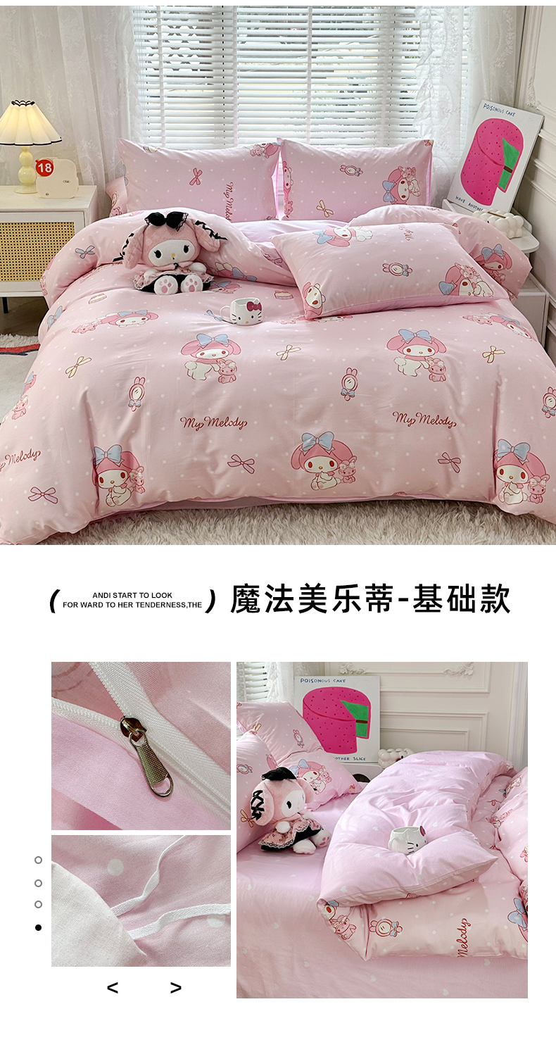 当前位置: 91家纺网 > 商品网购 > 床品套件 > 四件套 > 全棉普通四件套 > 玉元坊 2026新款正版授权三丽鸥系列全棉纯棉床单四件套学生三件套-美乐蒂系列 乖乖美乐蒂【简约款】