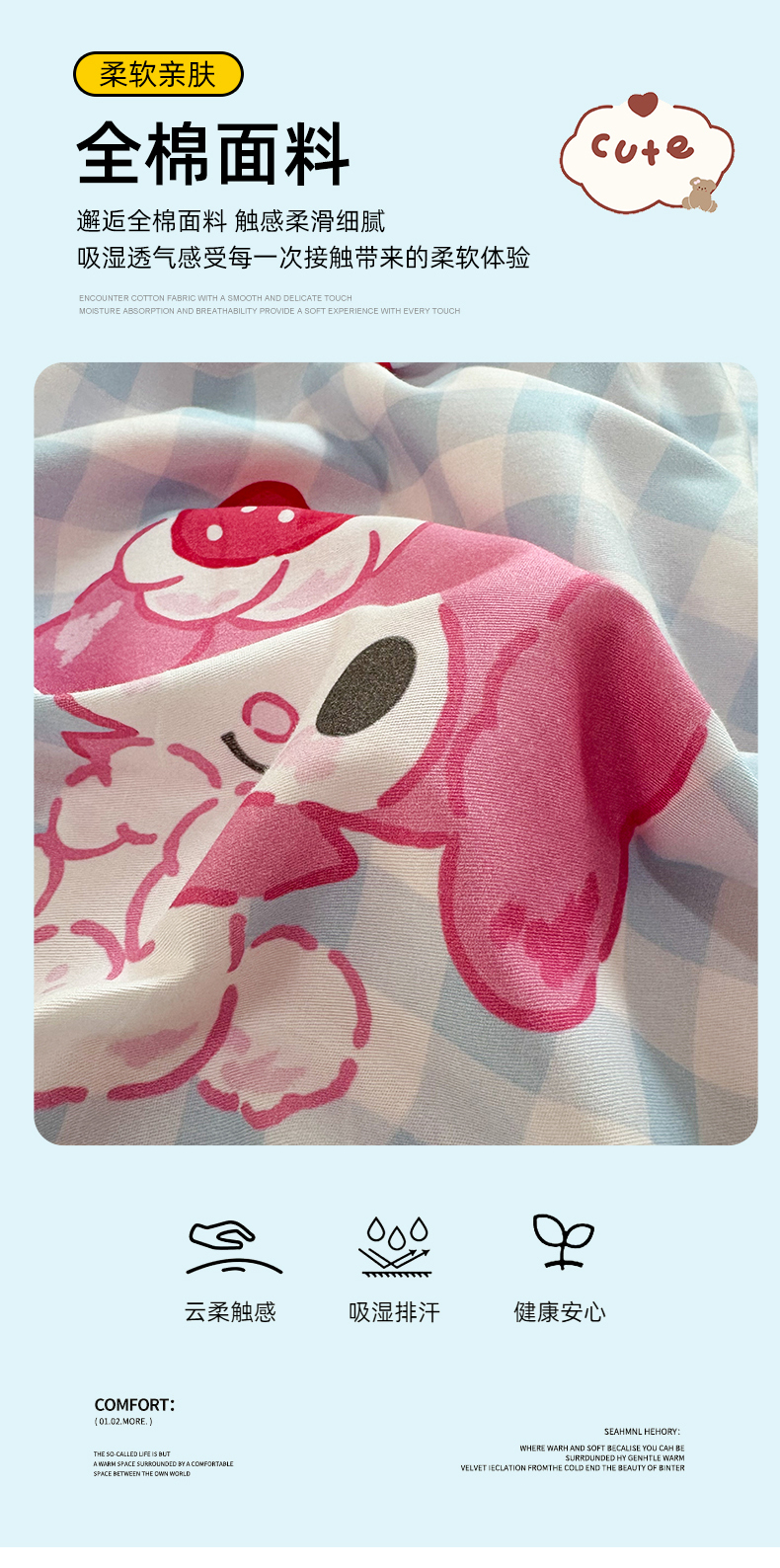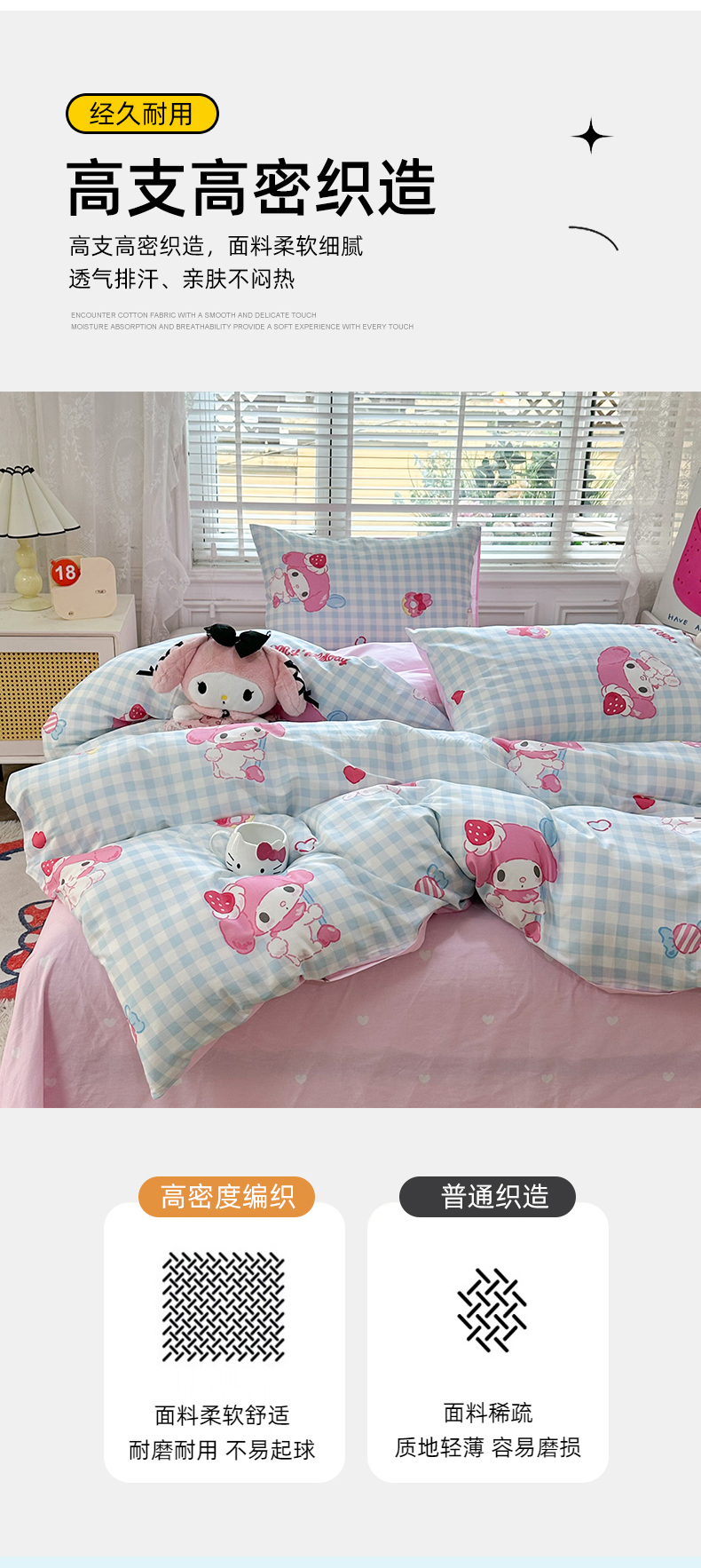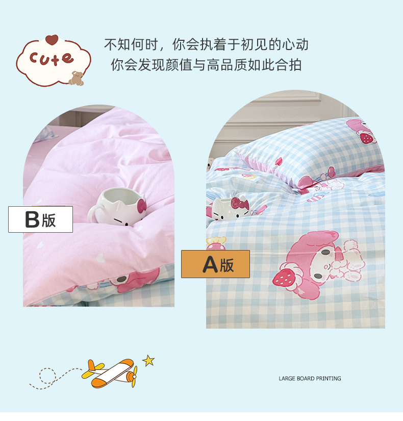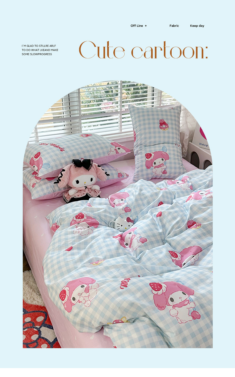当前位置: 91家纺网 > 商品网购 > 床品套件 > 四件套 > 全棉普通四件套 > 玉元坊 2026新款正版授权三丽鸥系列全棉纯棉床单四件套学生三件套-美乐蒂系列 乖乖美乐蒂【简约款】