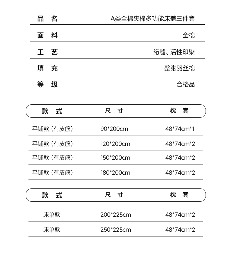 2.0*2.25m三件套 | ¥89.00 |