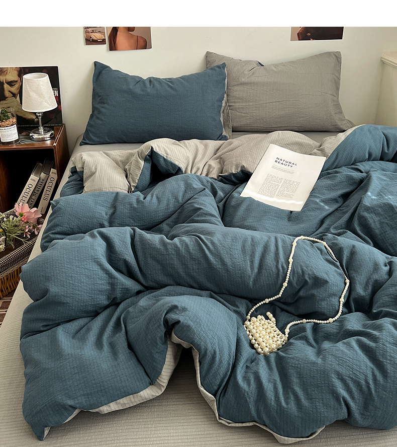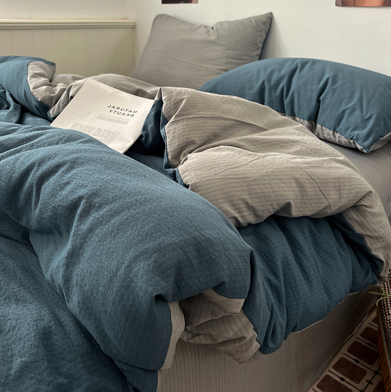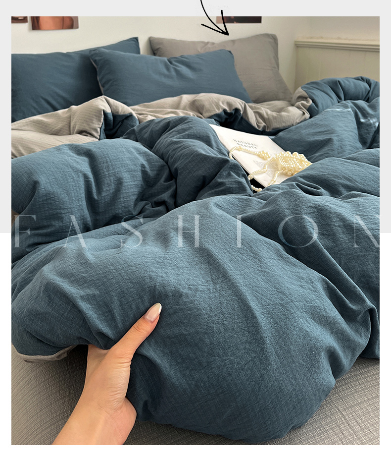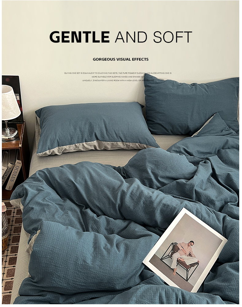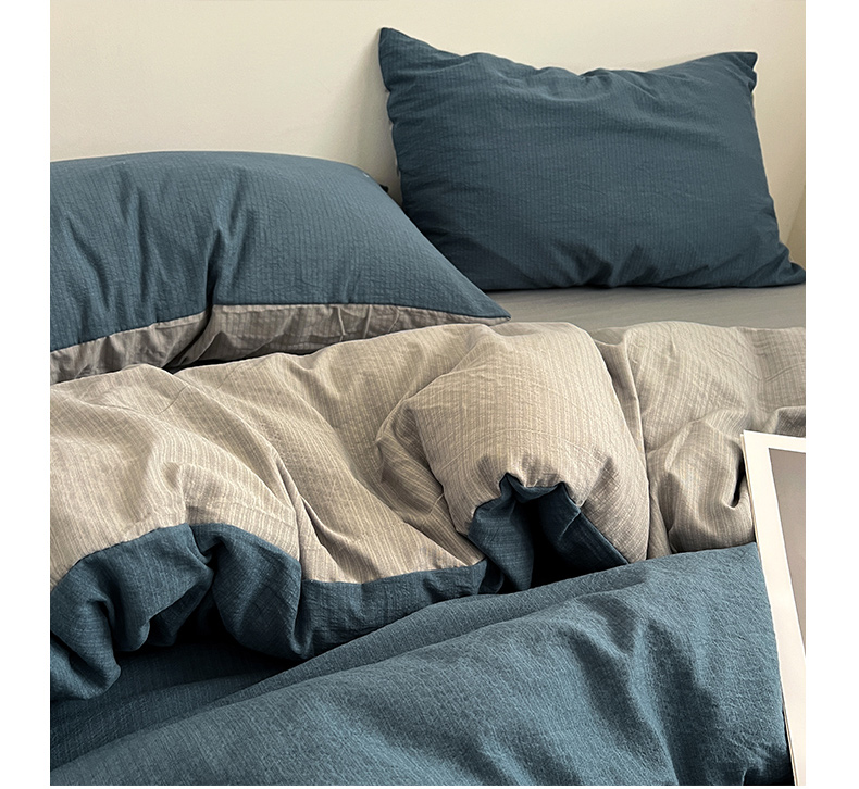 当前位置: 91家纺网 > 商品网购 > 床品套件 > 四件套 > 双层纱四件套 > 花伞家居 2026新款简约纯色双拼双层纱高克重水洗棉四件套 深邃蓝+松烟灰