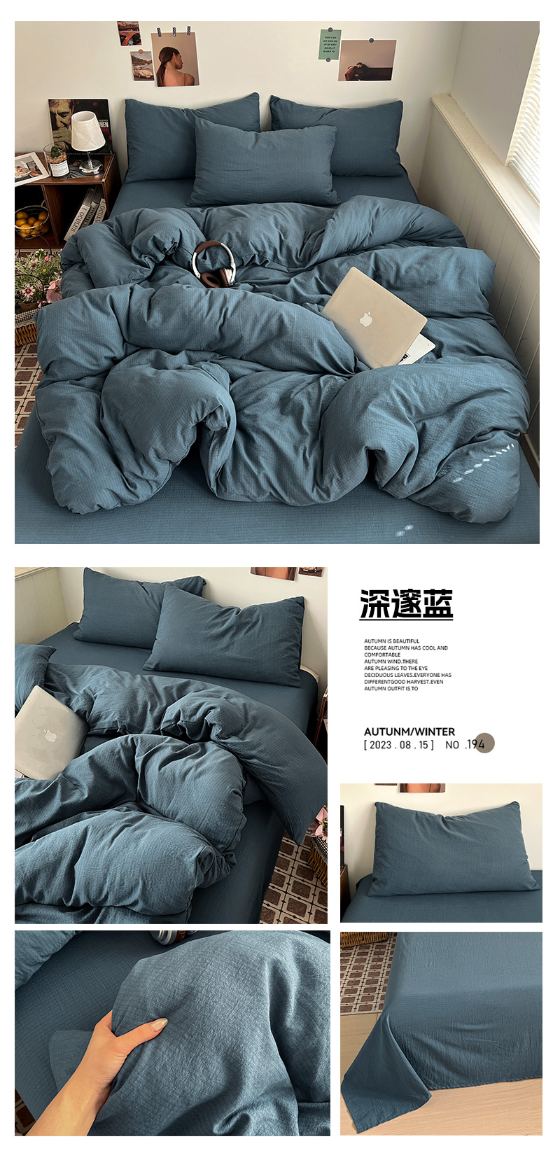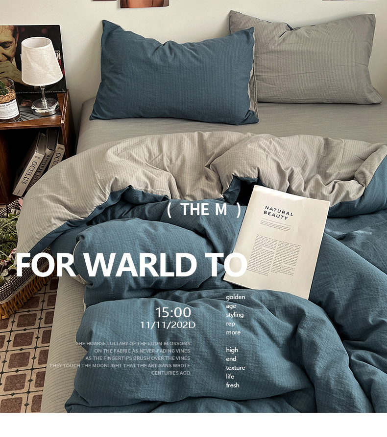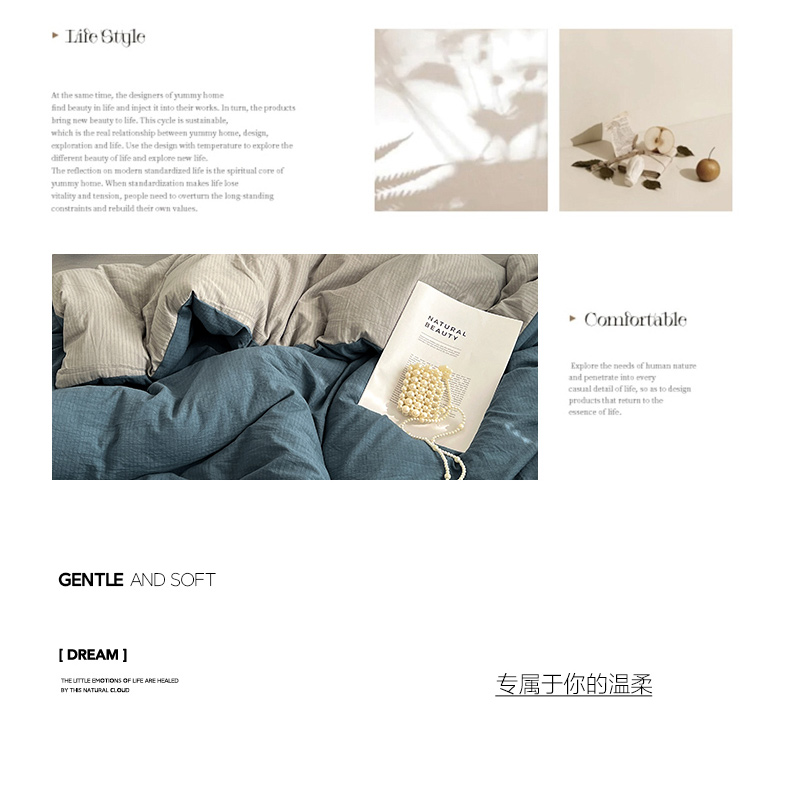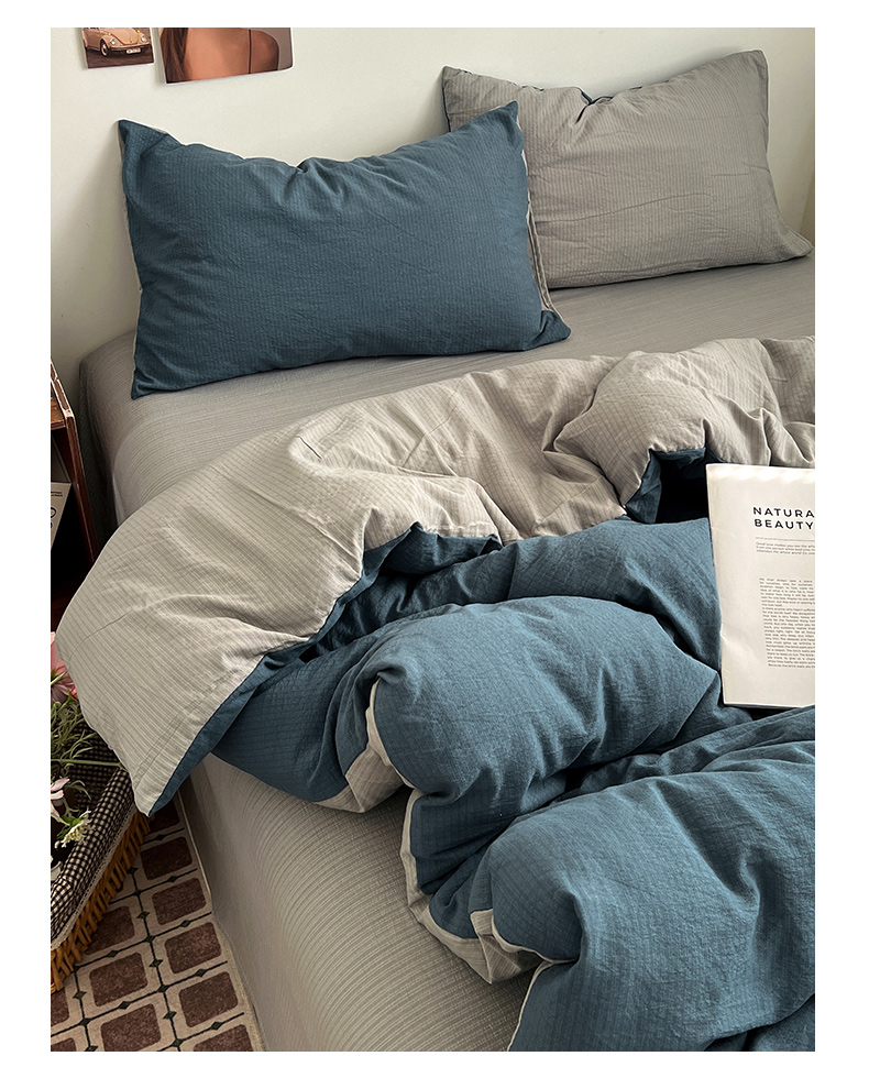 当前位置: 91家纺网 > 商品网购 > 床品套件 > 四件套 > 双层纱四件套 > 花伞家居 2026新款简约纯色双拼双层纱高克重水洗棉四件套 深邃蓝+松烟灰