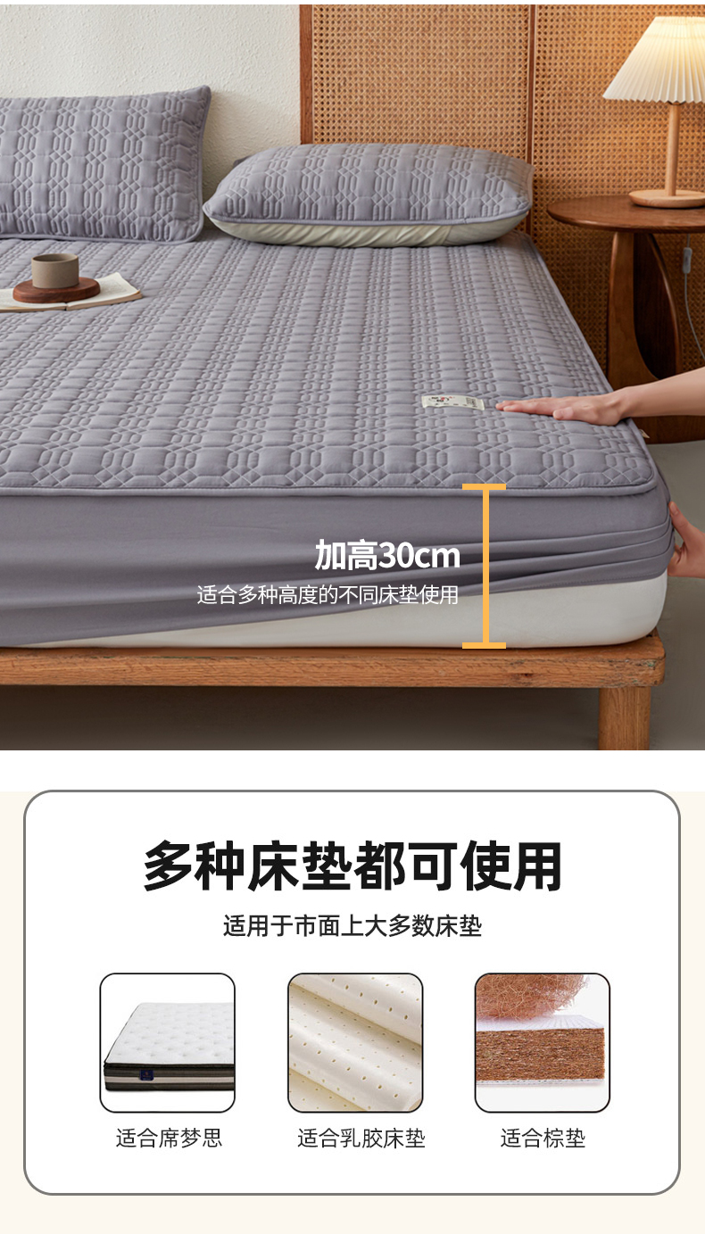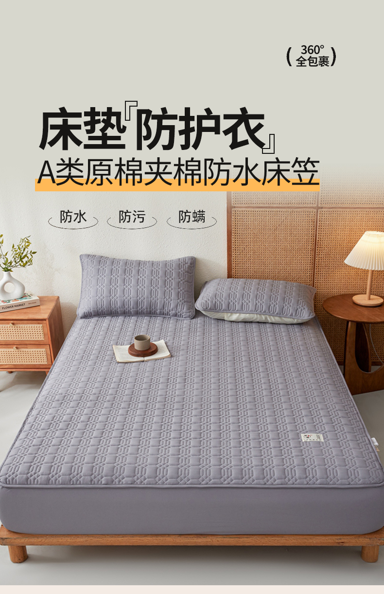 邵依家纺 2026新款原棉防水床笠系列 菱格深灰