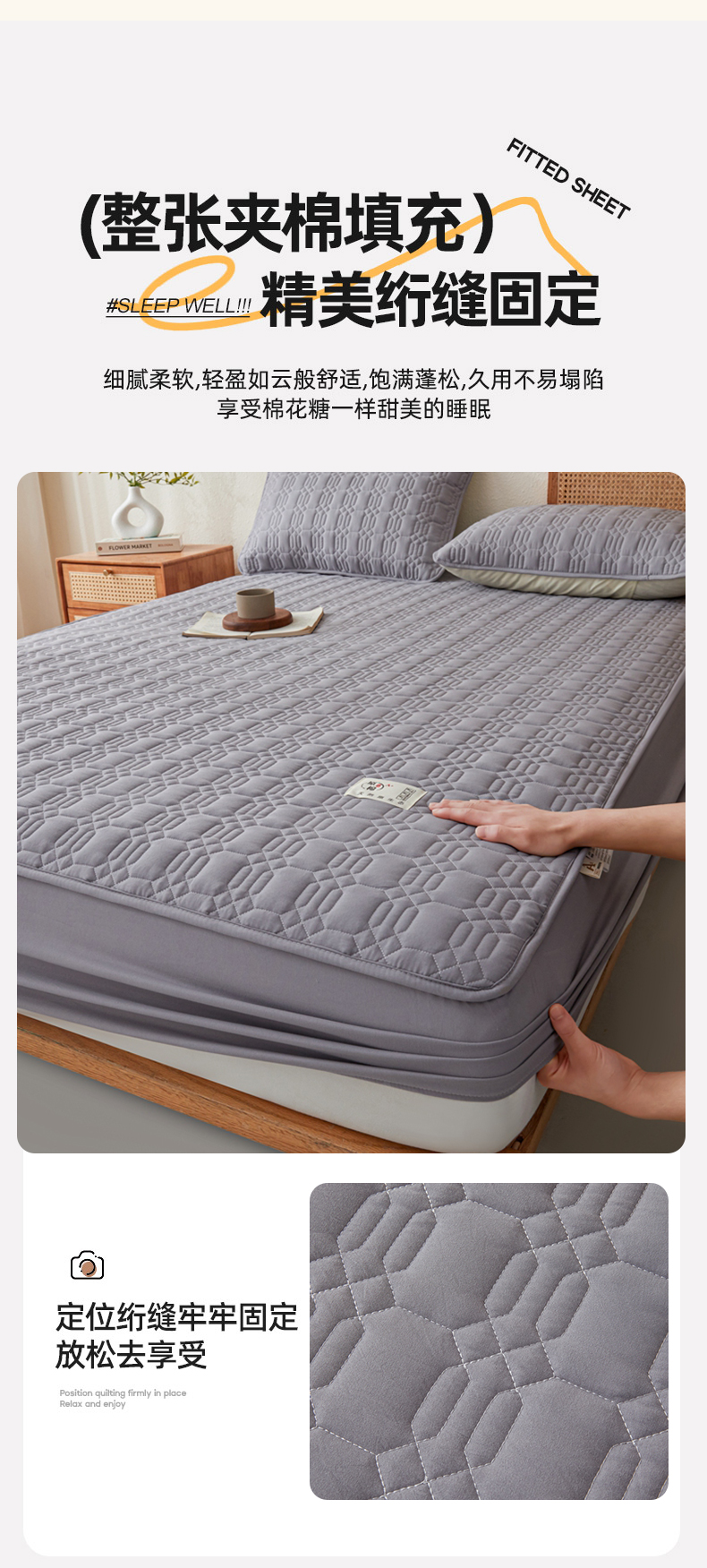 当前位置: 91家纺网 > 商品网购 > 床上用品 > 床笠 > 邵依家纺 2026新款原棉防水床笠系列 菱格深灰