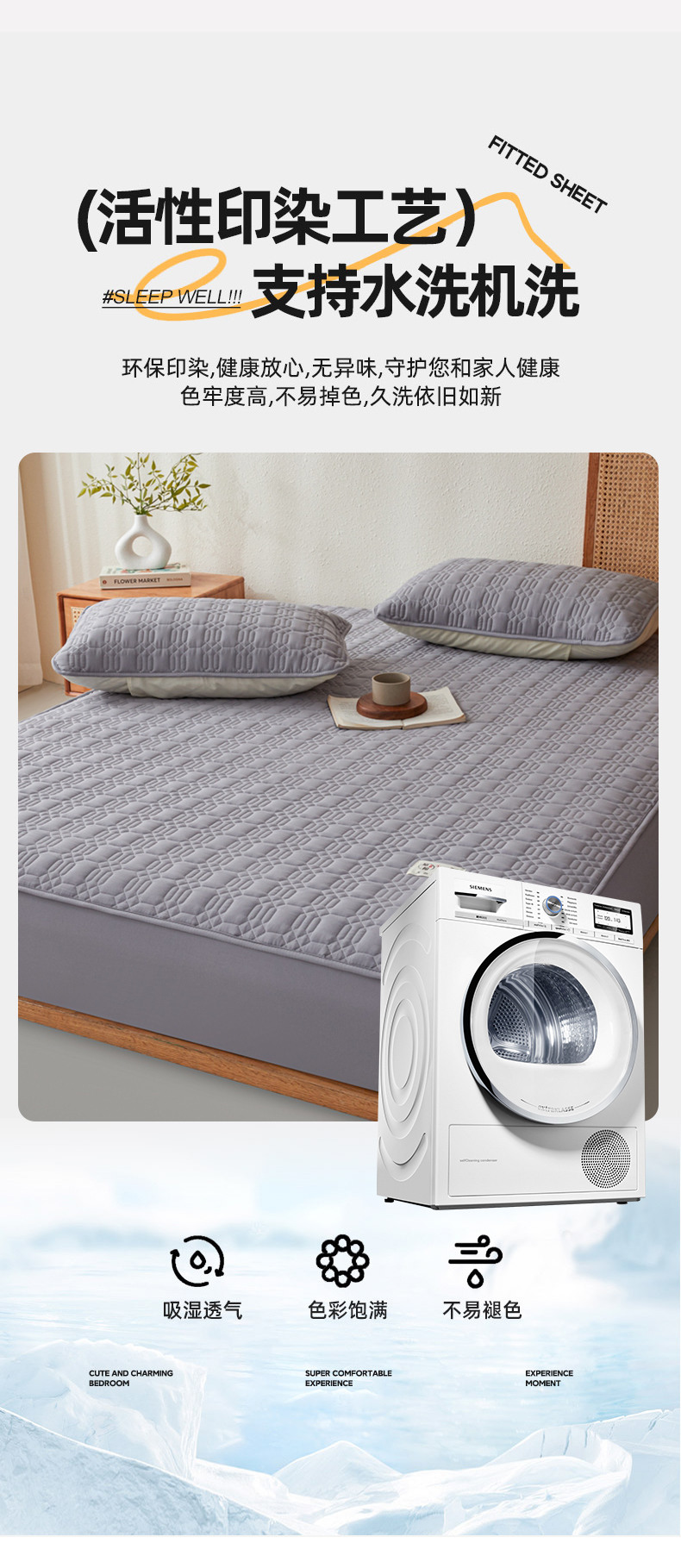 • 91家纺网 家纺一手货源 找家纺 邵依家纺 2026新款原棉防水床笠系列 菱格深灰