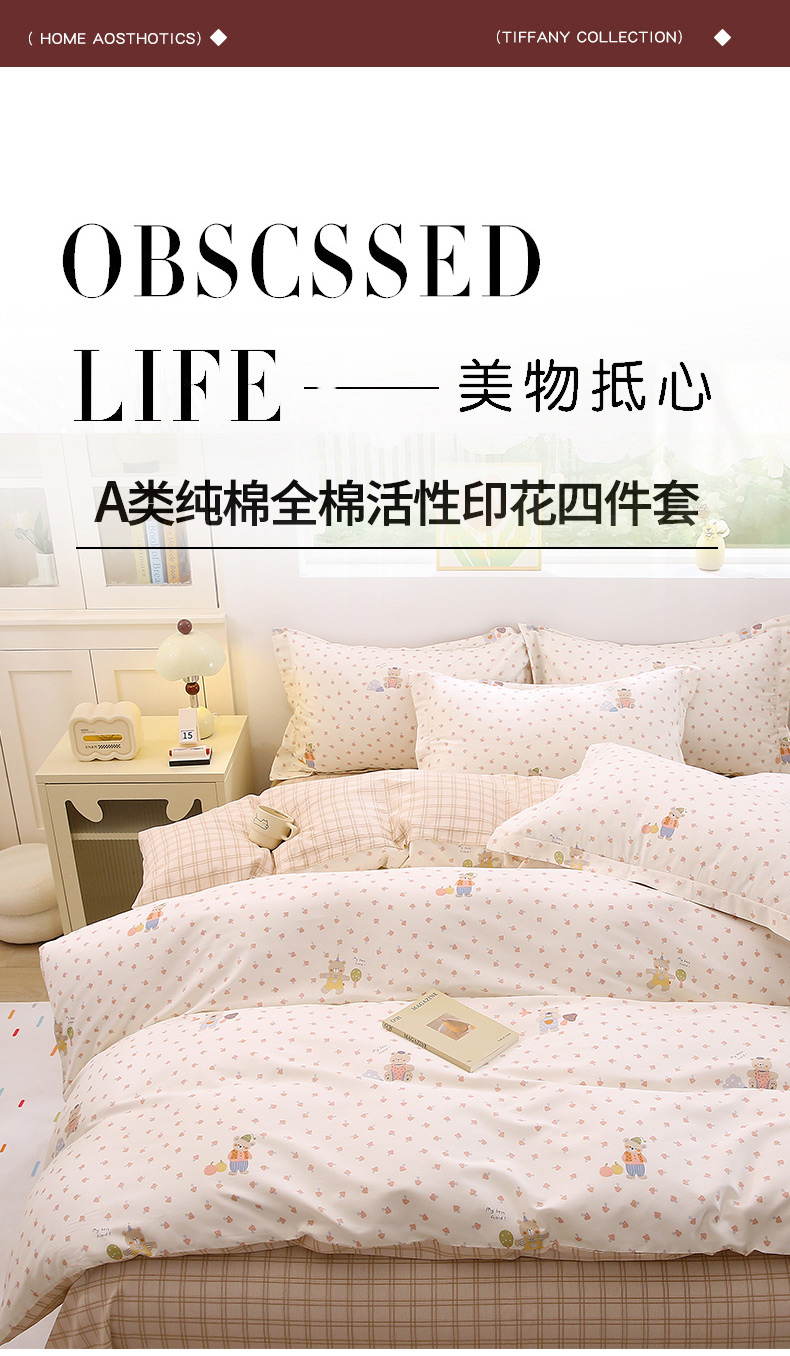 (总)织写 2025新款针织棉四件套床单四件套小清新四件套,初享时光-咖,初享时光-蓝,春意盎然,动物乐园,狗狗家族,红色樱桃,蝴蝶结-咖,蝴蝶结-绿,花开烂漫,浪漫物语,琉璃,森林物语,宛然,乡间漫步,小草莓,小狗点点,小熊宝贝,紫色浪漫
