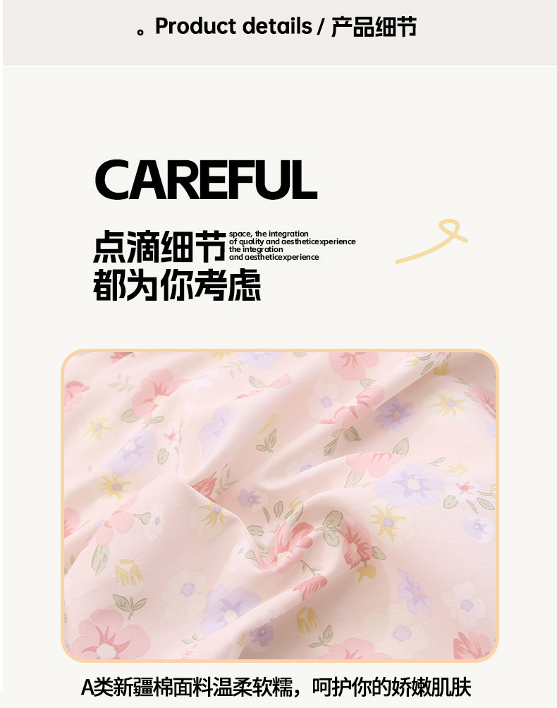 织写 2026新款A类单件被套 单被套全棉纯棉 12868 预留缩水尺寸 绚烂花朵-粉