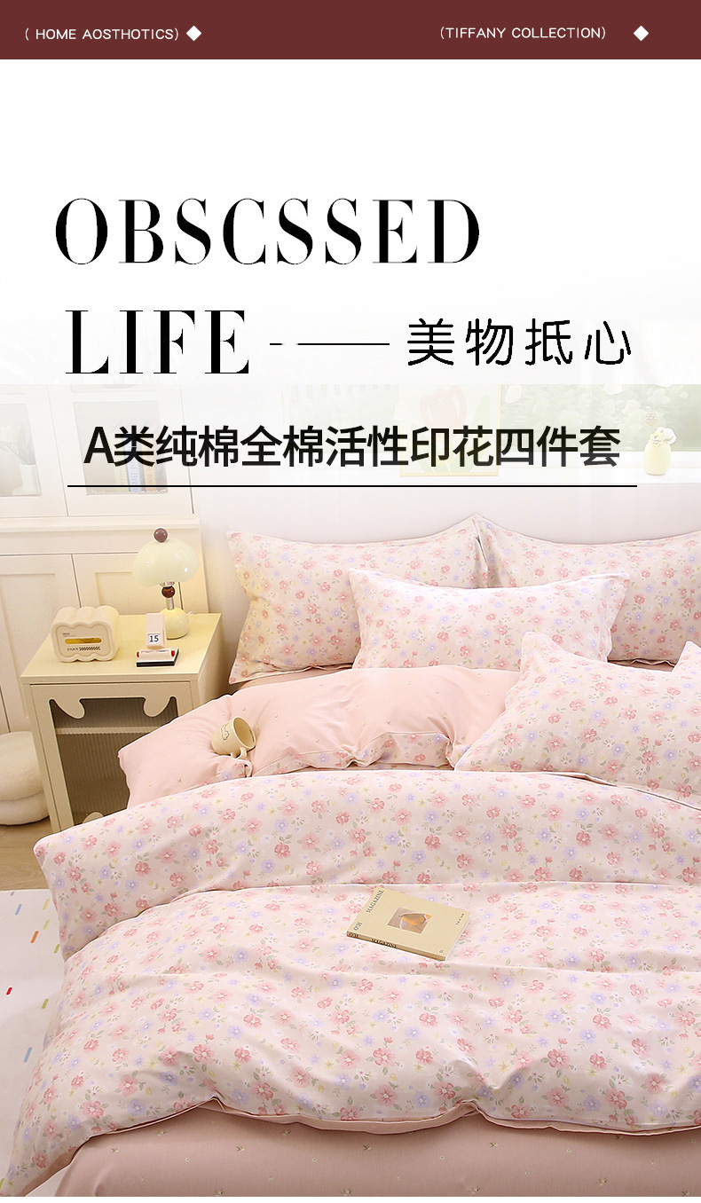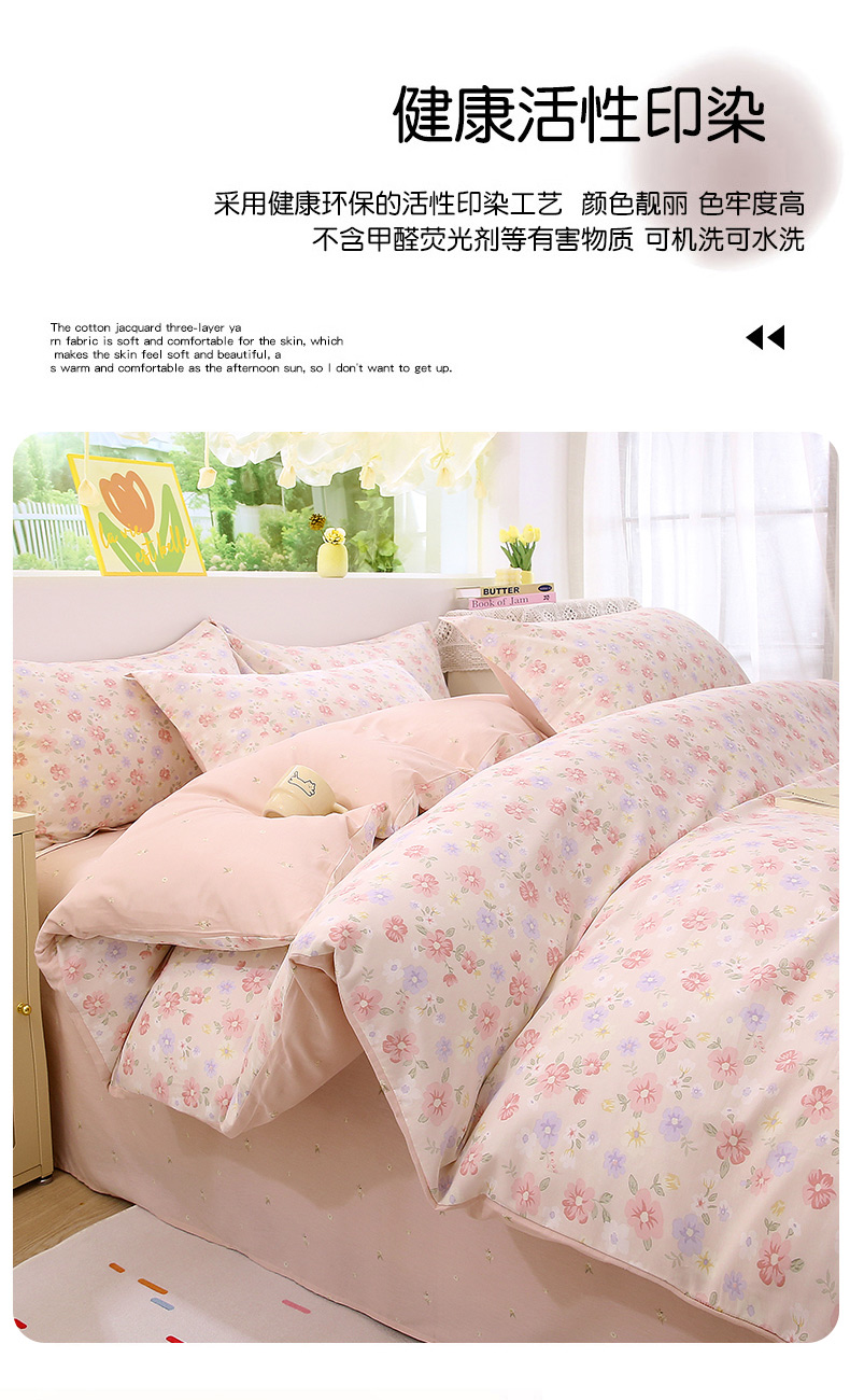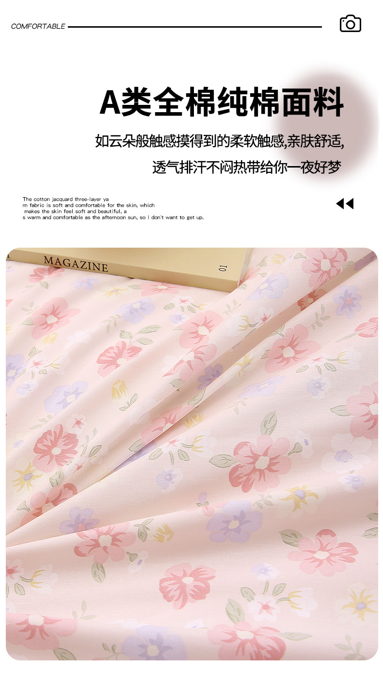 当前位置: 91家纺网 > 商品网购 > 床品套件 > 四件套 > 全棉普通四件套 > 织写 2026新款A类 四件套纯棉全棉12868 预留缩水尺寸 绚烂花朵-粉