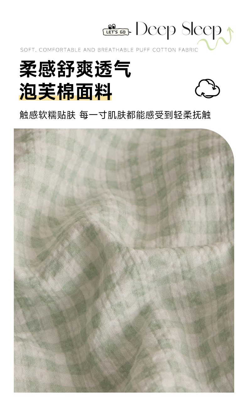 商品名称:艺菲阁家纺 2026新款泡芙棉夏被夏凉被空调被 可可绿格