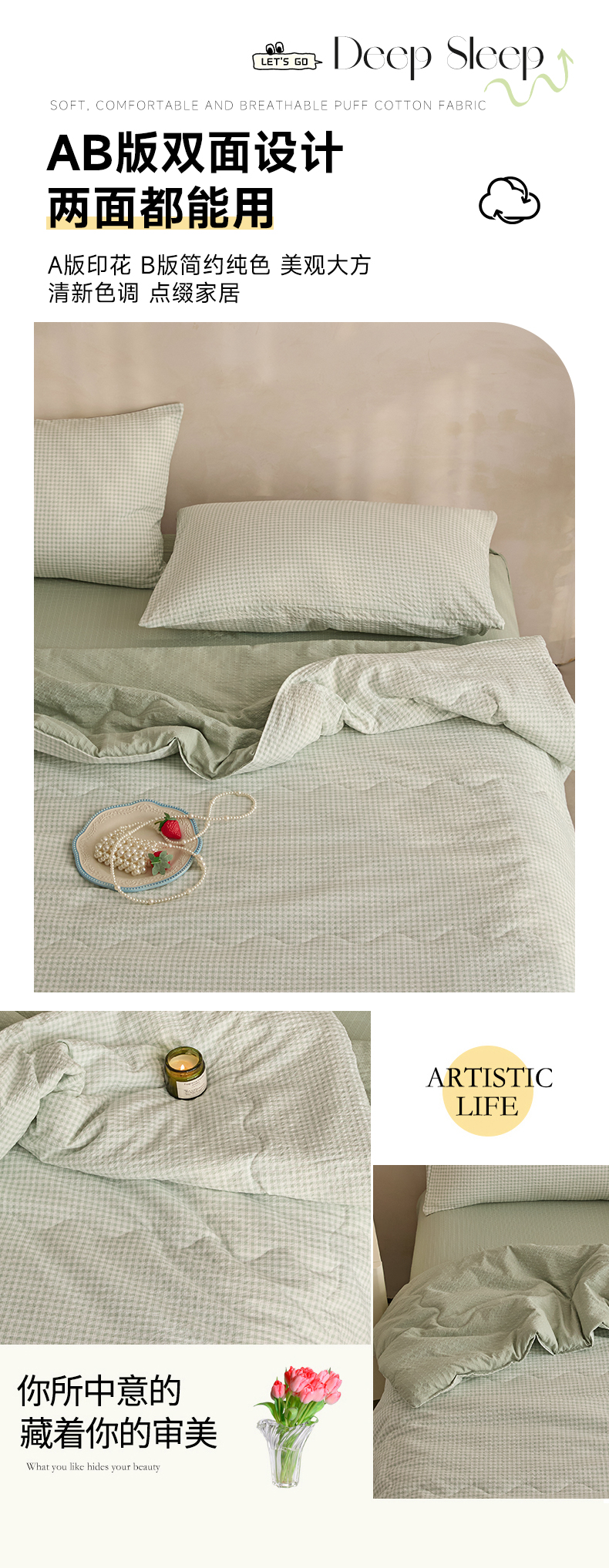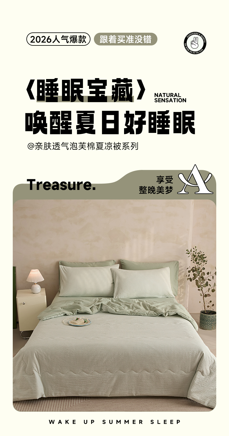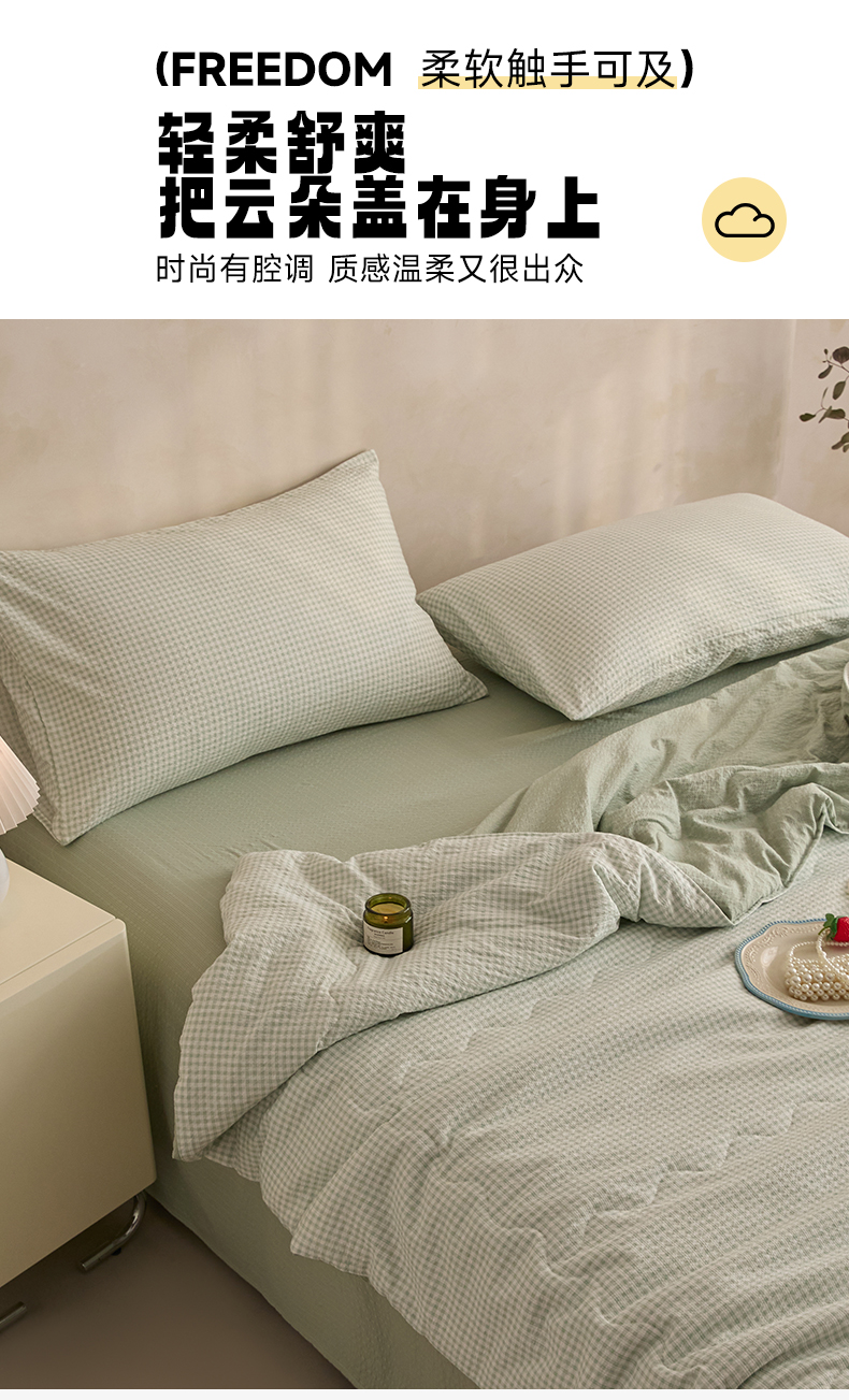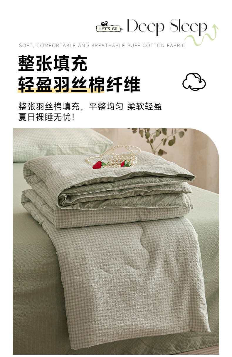 艺菲阁家纺 2026新款泡芙棉夏被夏凉被空调被 可可绿格
