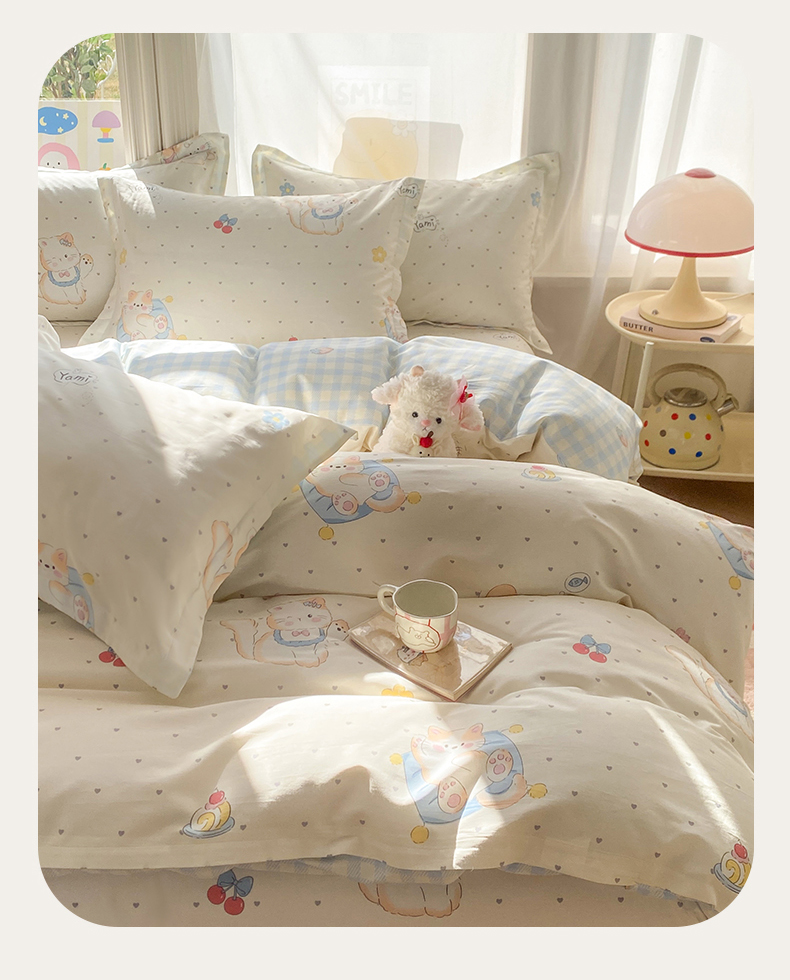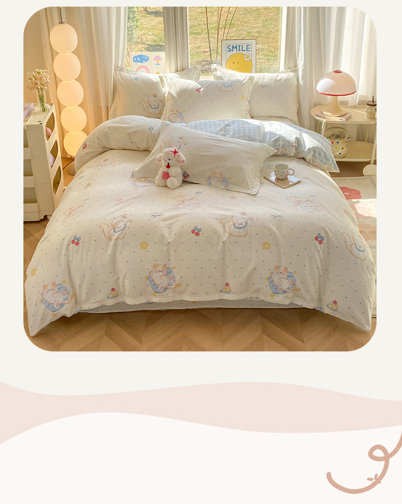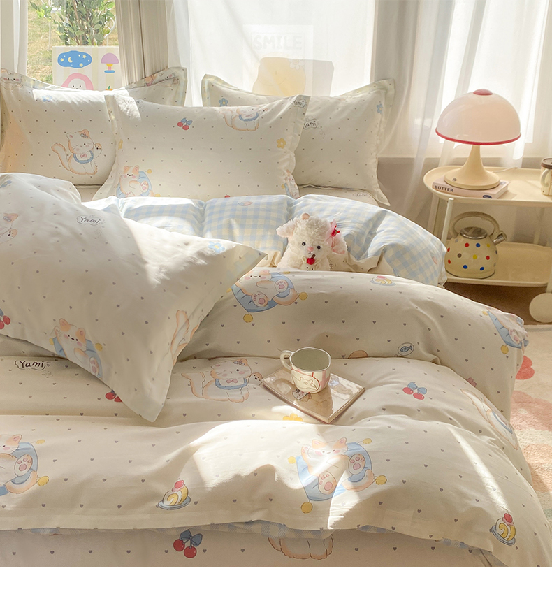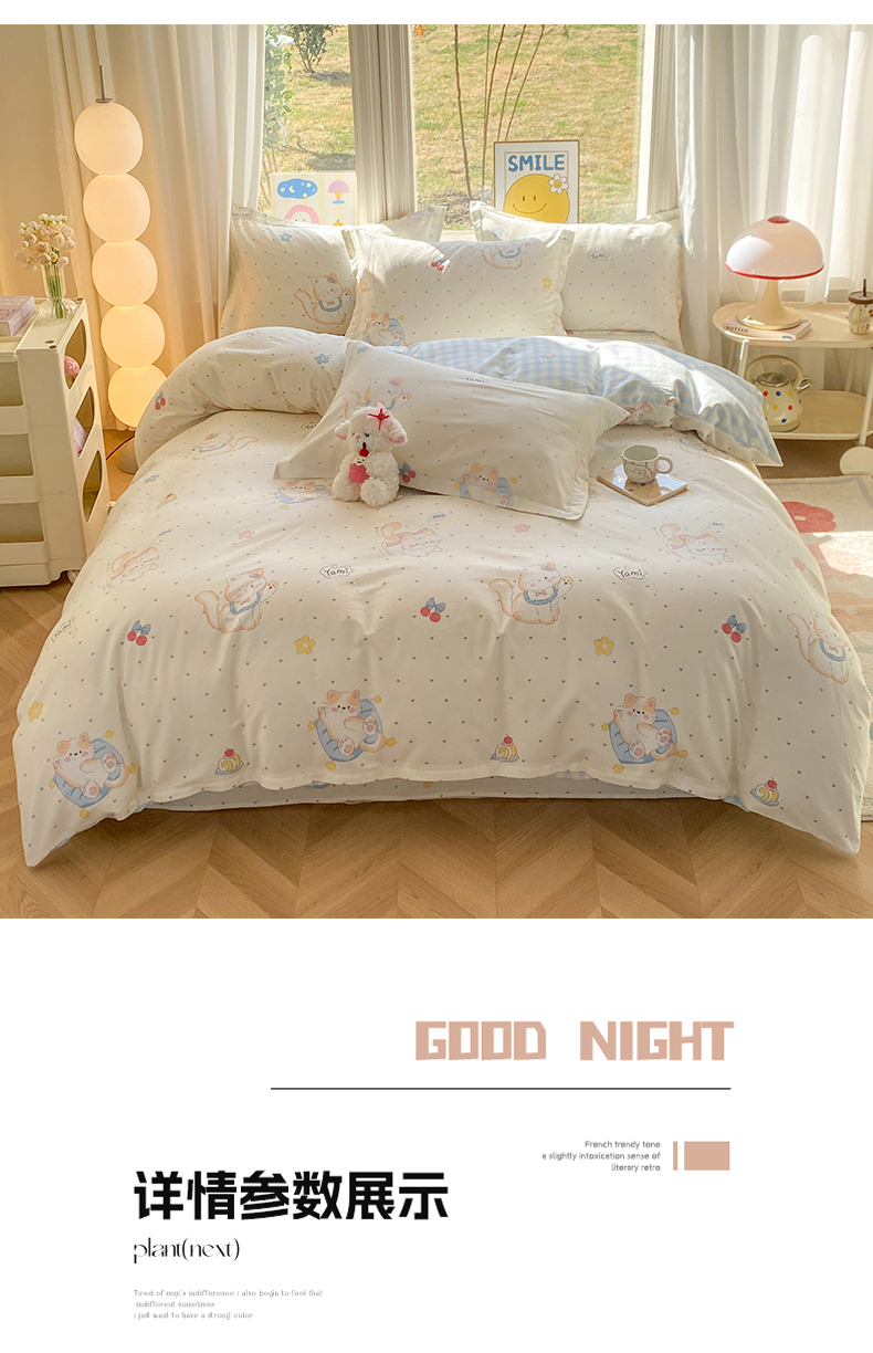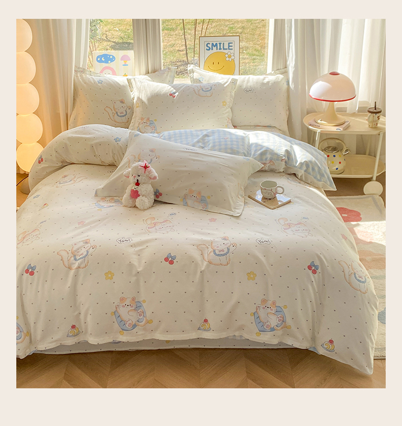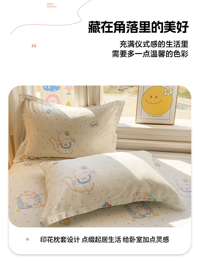 当前位置: 91家纺网 > 商品网购 > 床品套件 > 四件套 > 全棉普通四件套 > 朵安家纺 2026春夏新款12868全棉纯棉斜纹印花四件套 可爱猫