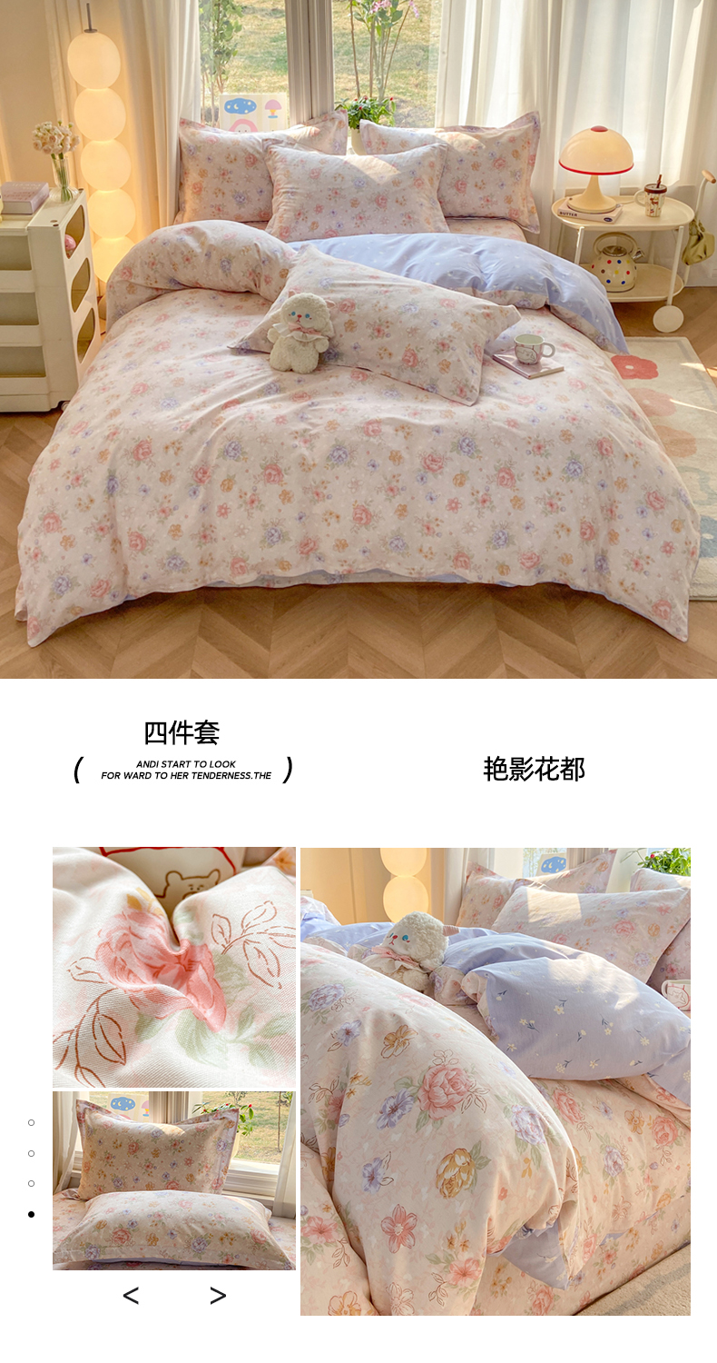 当前位置: 91家纺网 > 商品网购 > 床品套件 > 四件套 > 全棉普通四件套 > 朵安家纺 2026春夏新款12868全棉纯棉斜纹印花四件套 艳影花都