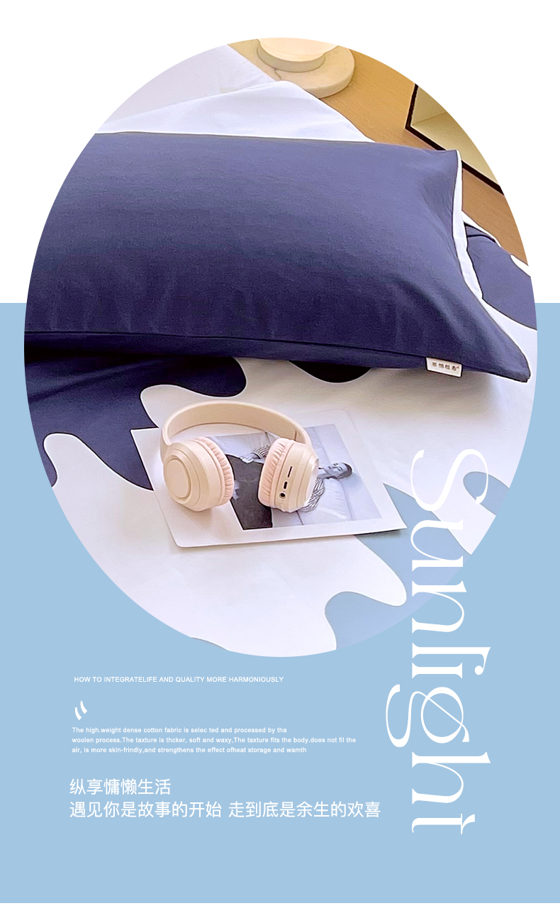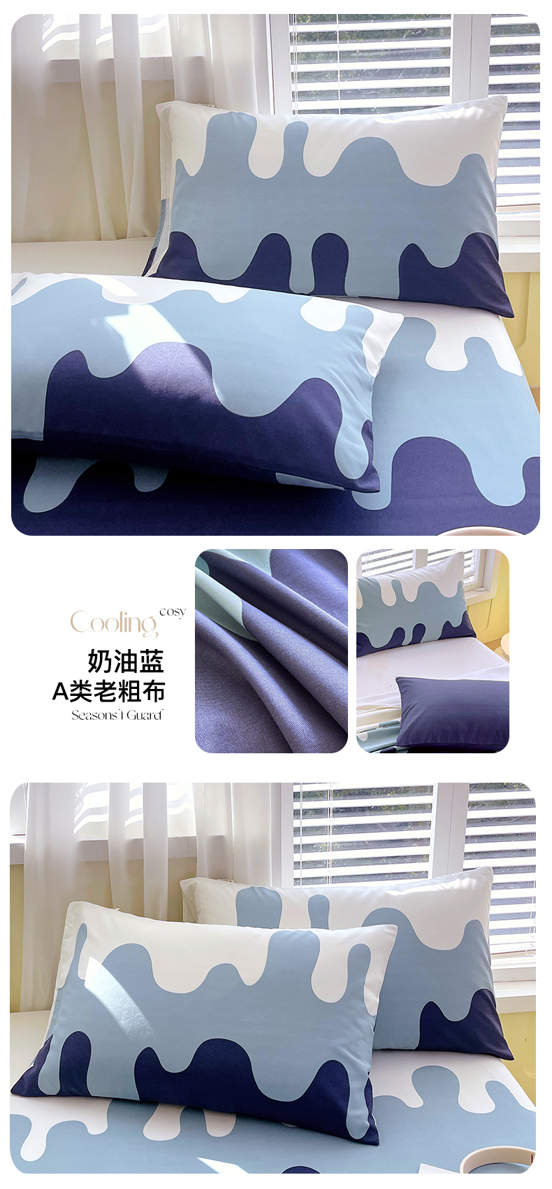 金鑫汇家纺 2026新款全棉老粗布单品枕套系列 奶油蓝