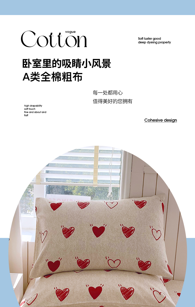 商品名称:金鑫汇家纺 2026新款全棉老粗布单品枕套系列 心语