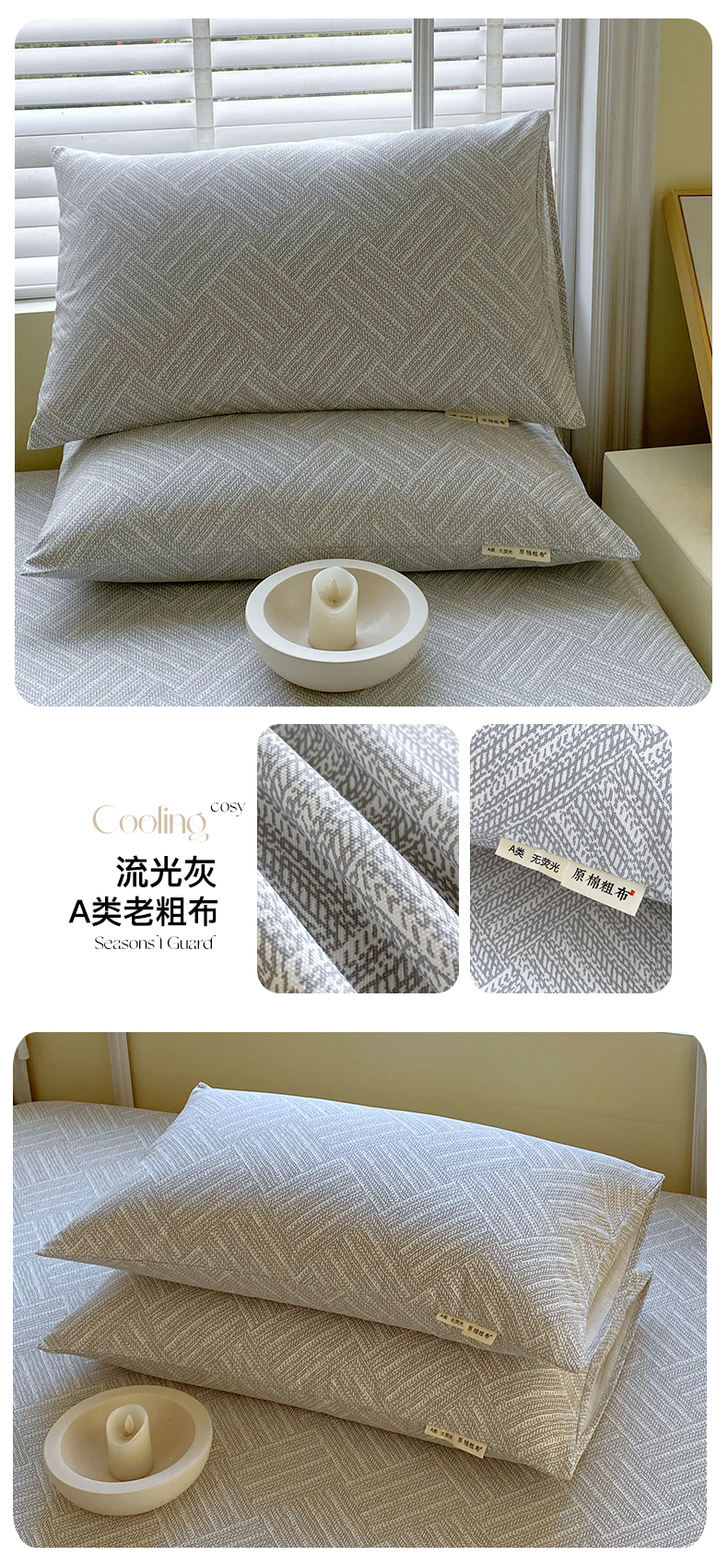 金鑫汇家纺 2026新款全棉老粗布单品枕套系列 心语