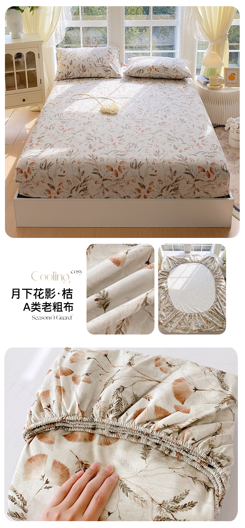 (总)金鑫汇家纺 2026新款全棉印花小清新单品床笠系列-可露丽,海盐可露丽,浅咖可露丽,浅绿可露丽,月下花影-桔,月下花影-蓝,月下花影-绿