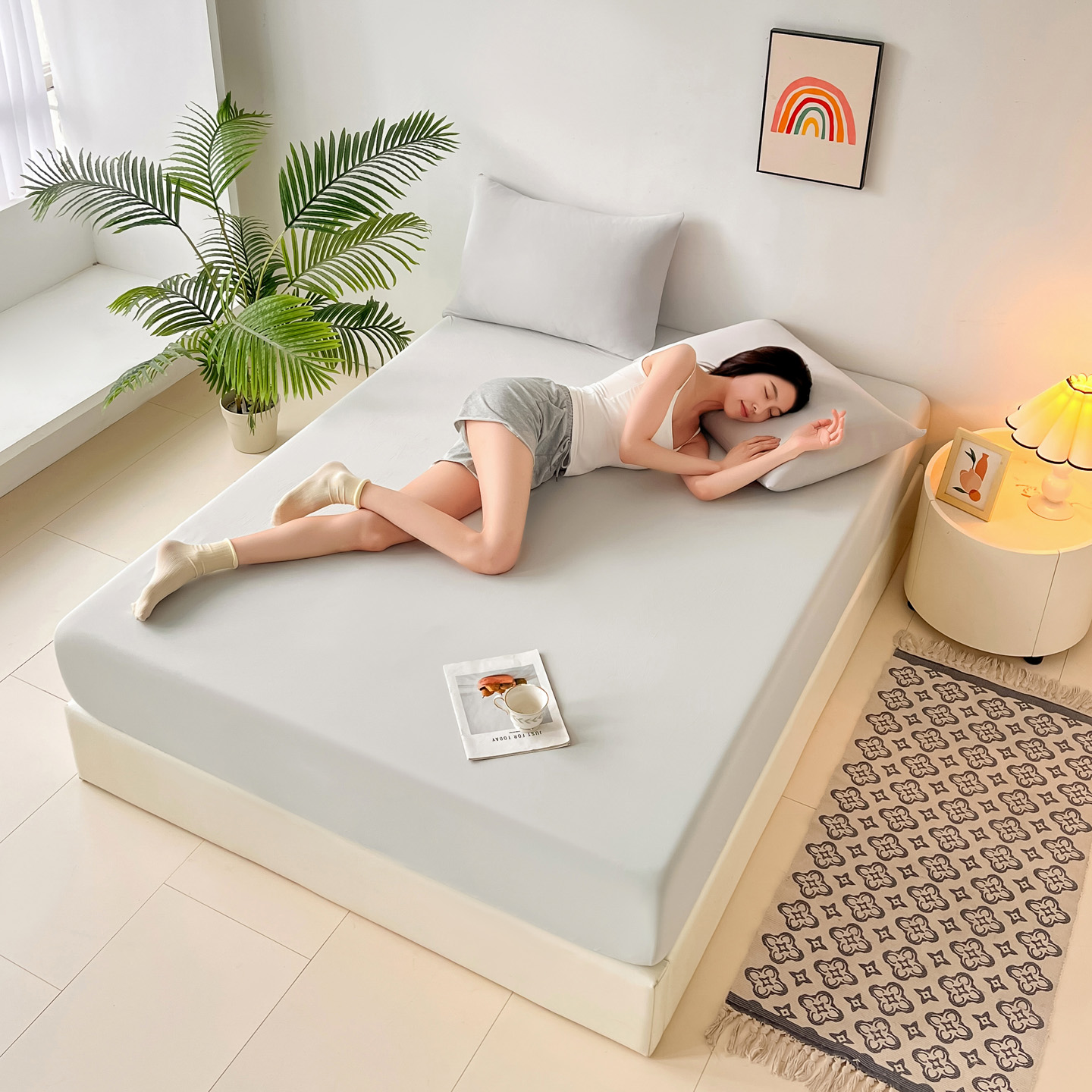 商品名称:亚龙工厂店 2026新款跨境热款云母冰丝席床笠三件套 玉色