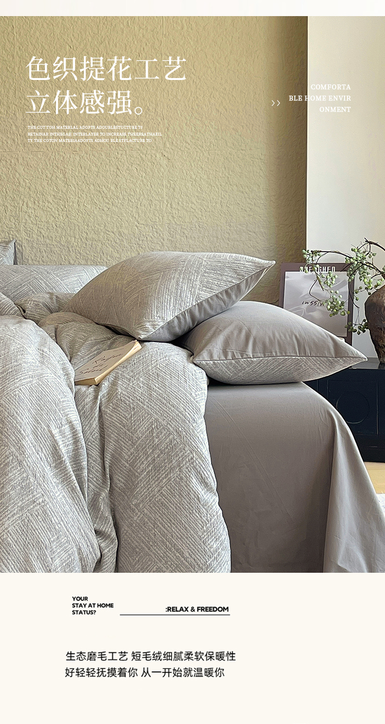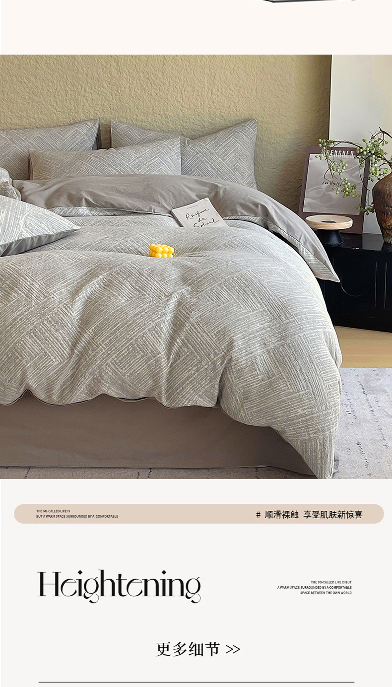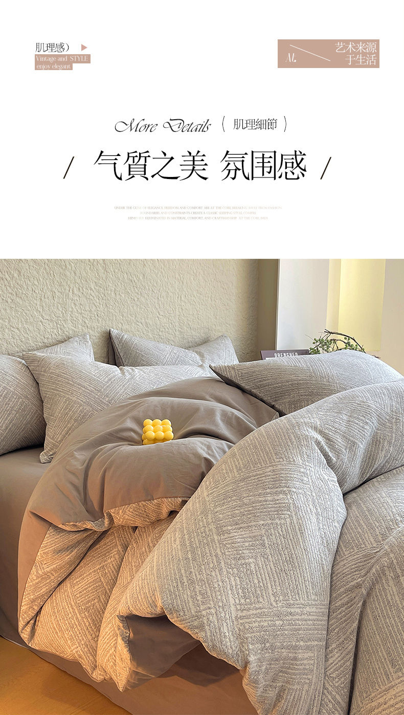 当前位置: 91家纺网 > 商品网购 > 床品套件 > 四件套 > 全棉普通四件套 > 琪格格纺织 2026新款纯棉纯棉色织肌理纹提花华夫格纯棉轻奢简约款四件套 简奢-浅灰