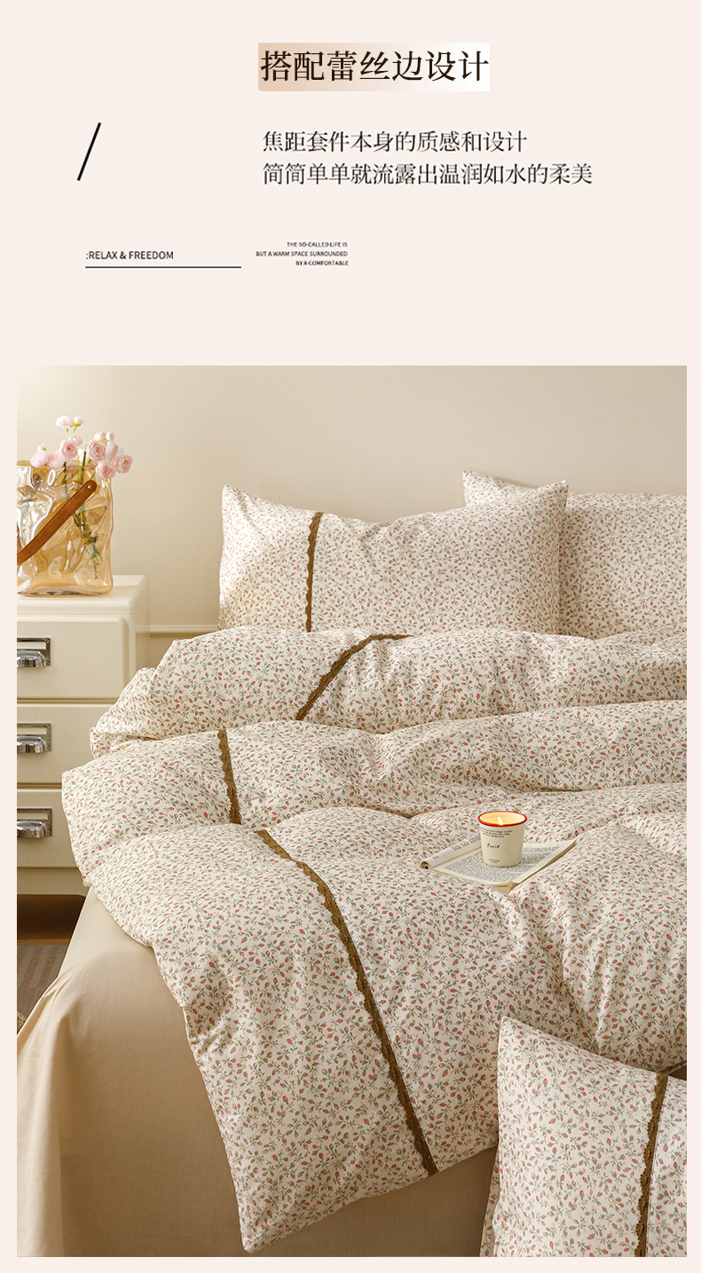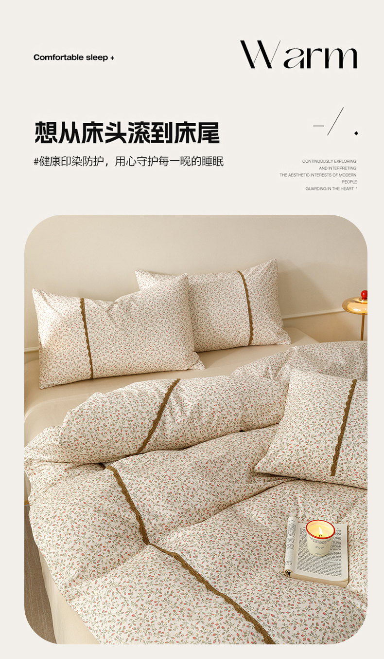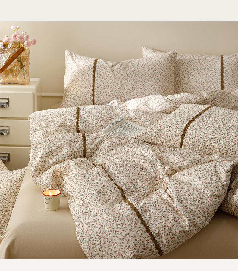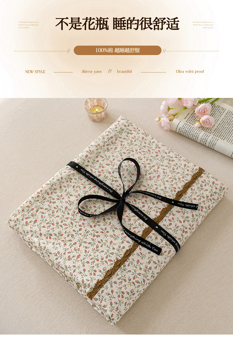 当前位置: 91家纺网 > 商品网购 > 床品套件 > 四件套 > 全棉普通四件套 > 女子家纺 2026新款40支13070全棉纯棉斜纹印花蕾丝四件套 含苞蔷薇