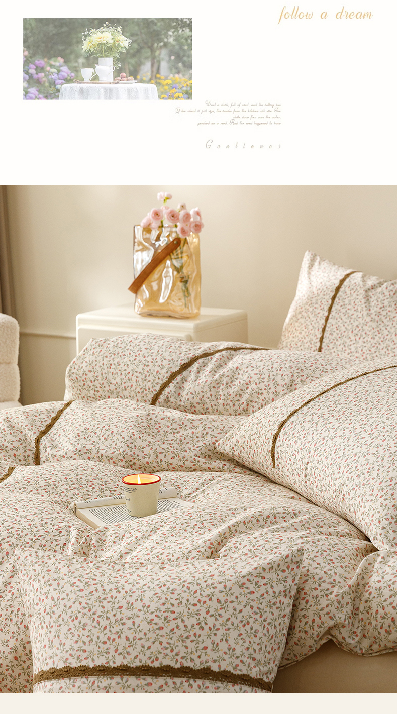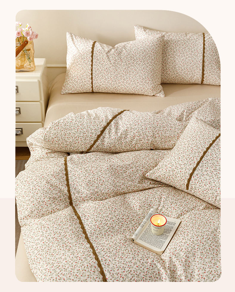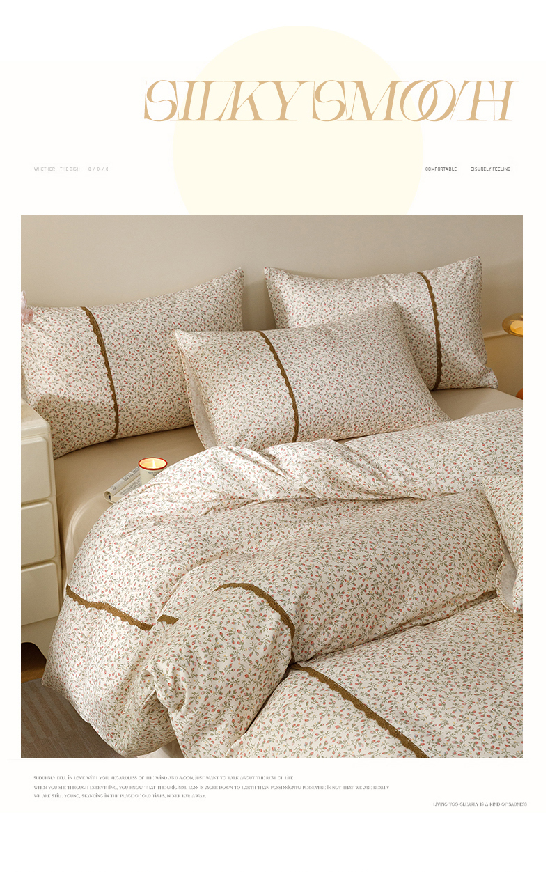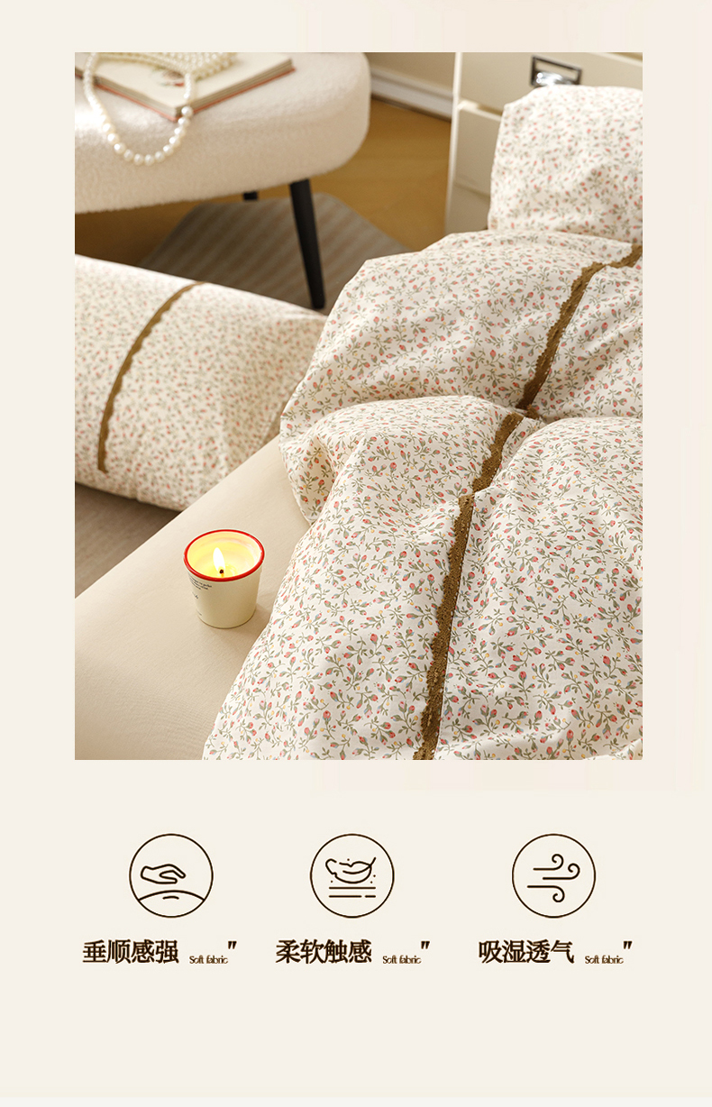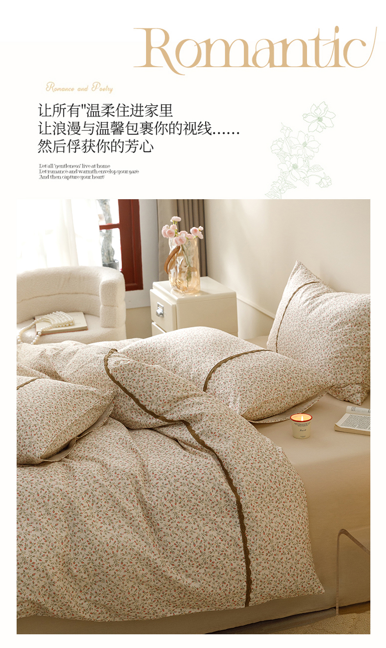 当前位置: 91家纺网 > 商品网购 > 床品套件 > 四件套 > 全棉普通四件套 > 女子家纺 2026新款40支13070全棉纯棉斜纹印花蕾丝四件套 含苞蔷薇